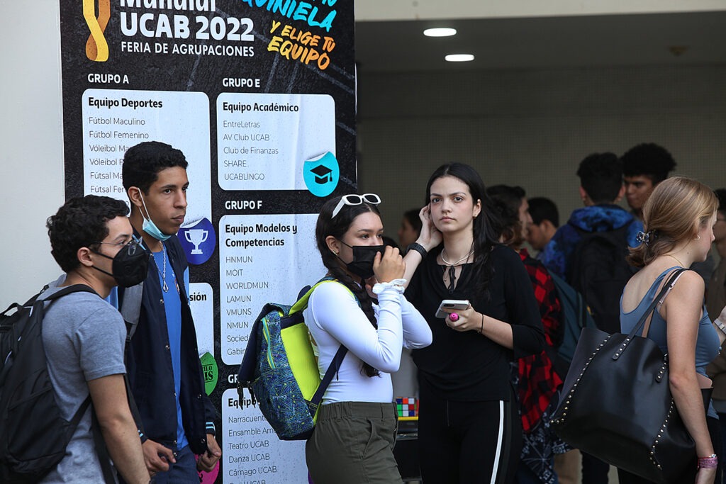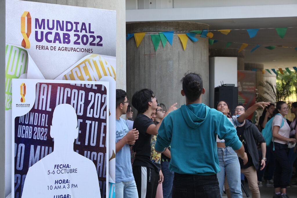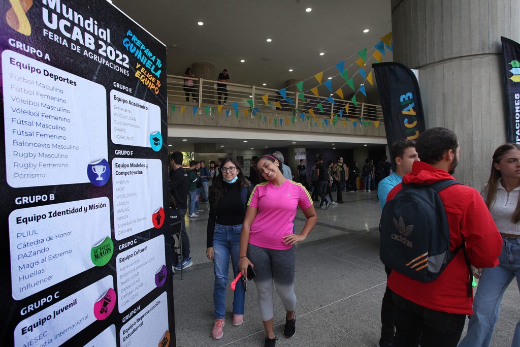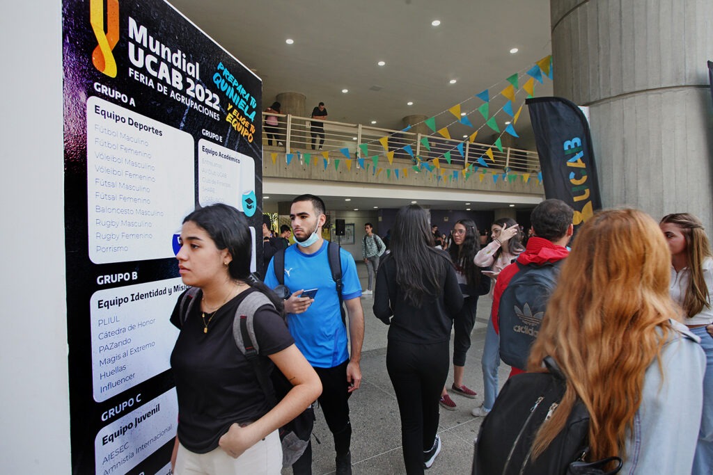 El llamado «Mundial UCAB 2022», organizado por la Dirección General de Desarrollo Estudiantil (DIDES), se desarrolló en la planta baja del Edificio Cincuentenario. Allí se dieron cita más de 50 agrupaciones que hacen vida en la casa de estudios, las cuales fueron distribuidas entre ocho grupos (de la letra A a la H) por categoría de agrupación, al estilo de la cita mundialista: