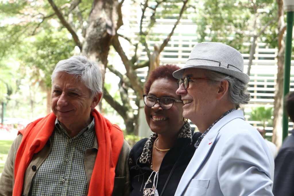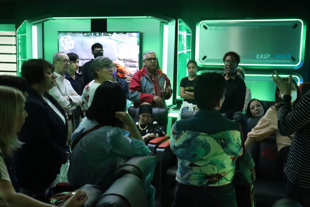 La primera parada del recorrido fue el Espacio Americano del Centro Cultural. Allí tuvo lugar el acto de bienvenida, cuya maestra de ceremonia fue la profesora Genevieve Saint-Surin, coordinadora de Relaciones Institucionales de la Escuela de Comunicación Social y una de las integrantes de la promoción de 1982.