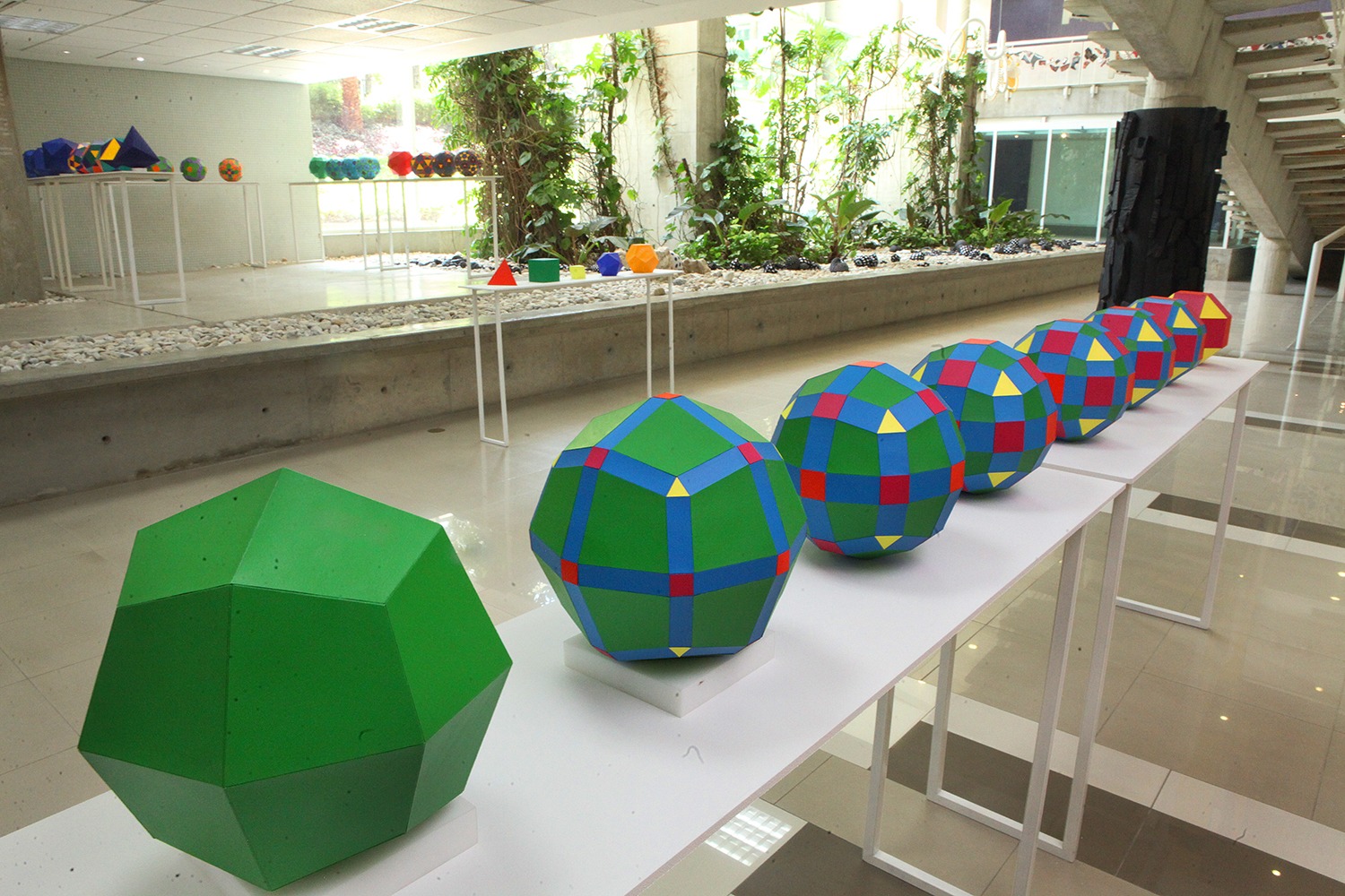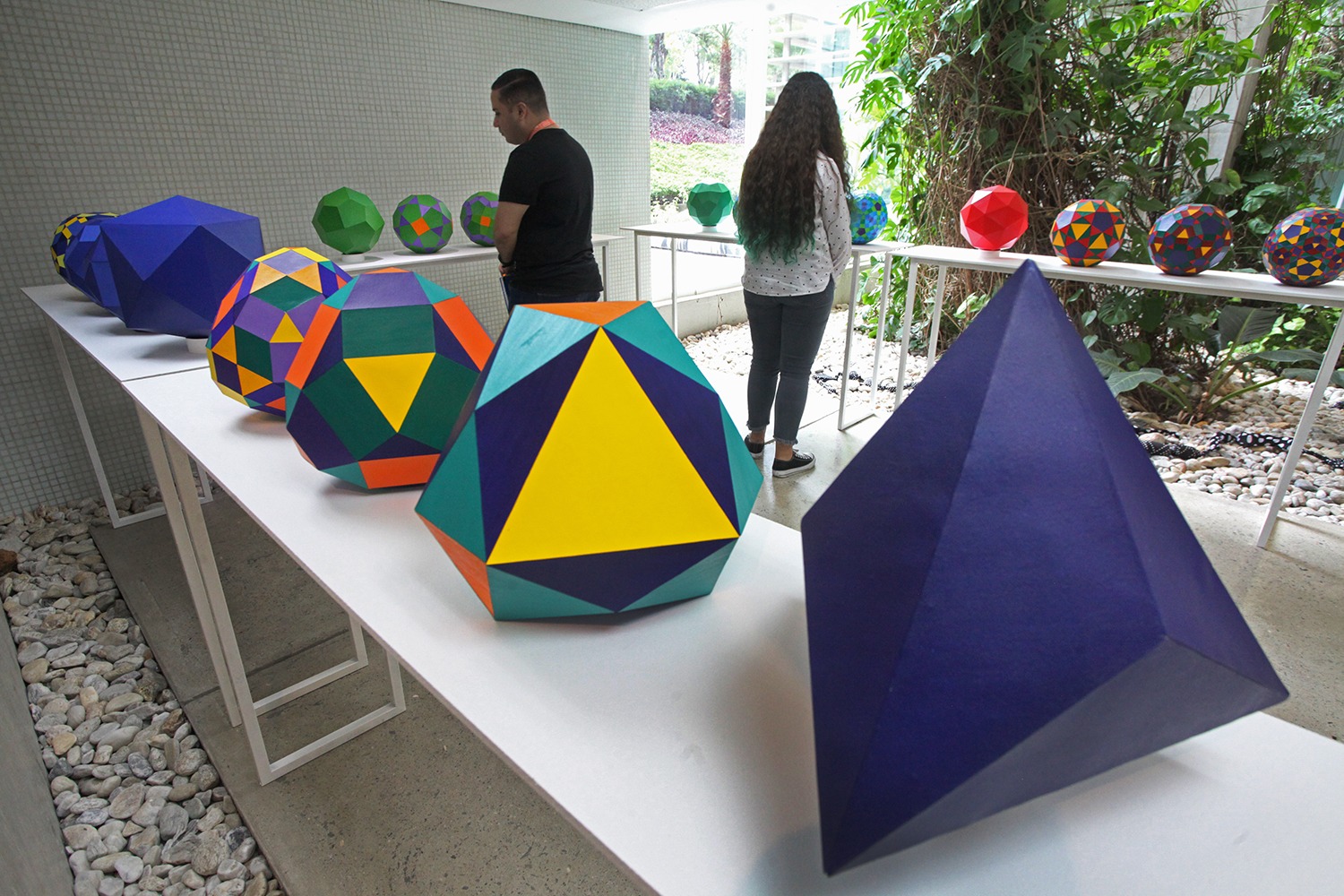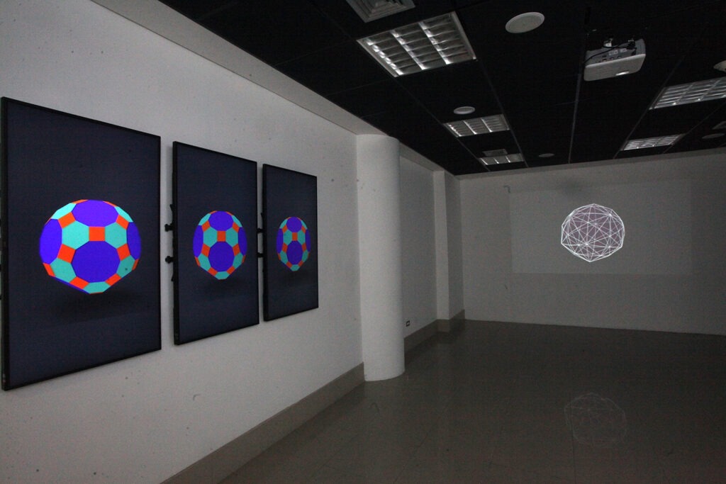 Figuras pertenecientes a los «Sólidos regulares», «Sólidos semiregulares» y «Sólidos duales» invitan al visitante a explorar nuevos mundos de la mano de la matemática, la filosofía y, por supuesto, el arte. Bajo la curaduría de Lorena Rojas Parma, el artista caraqueño presenta dos formas diferentes para apreciar su obra: en vivo y con un videoarte