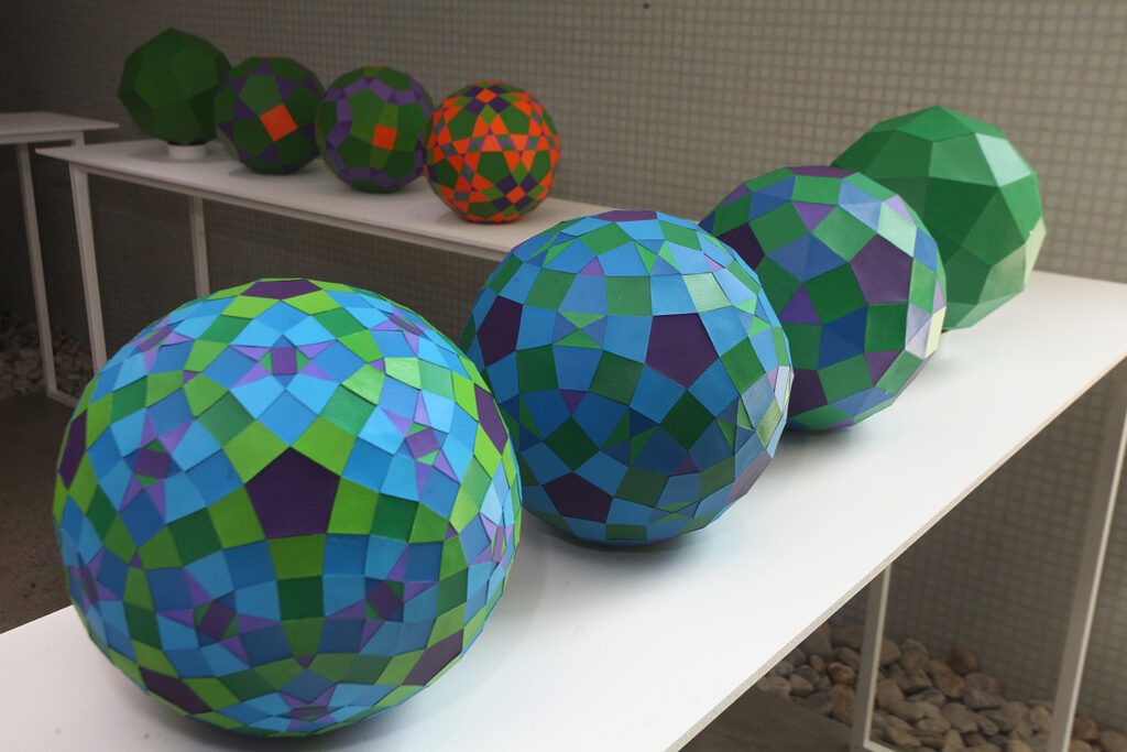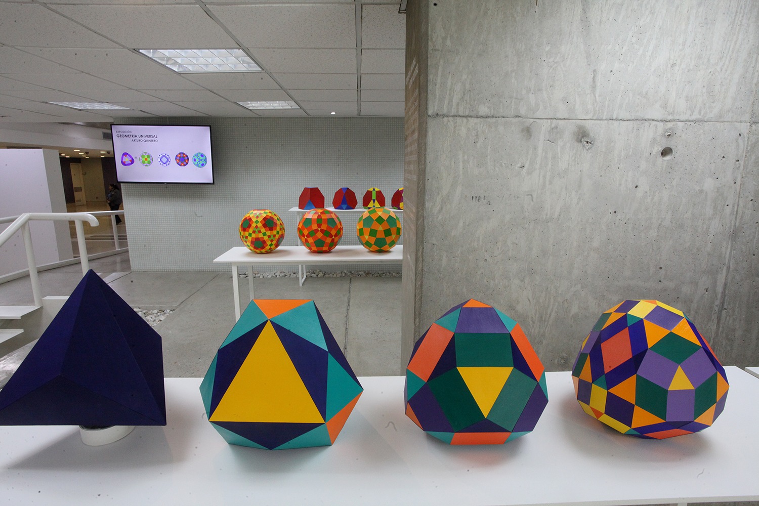 De lejos, algunas de las piezas que conforman la exhibición «Geometría Universal» del artista plástico caraqueño Arturo Quintero (1964), parecen esferas. Sin embargo, cada aproximación al objeto delata volúmenes, formas y patrones que parten de los sólidos platónicos (o poliedros convexos) para hablar sobre el proceso creativo del autor y de la evolución y transformación de las formas geométricas. La exposición, que incluye 53 piezas tridimensionales, fue inaugurada el pasado 15 de octubre en los espacios de la Sala Experimental del Centro Cultural UCAB. Además, «Geometría Universal» cuenta con un videoarte en la sala de Inmersión Digital, también en el sótano del recinto.
