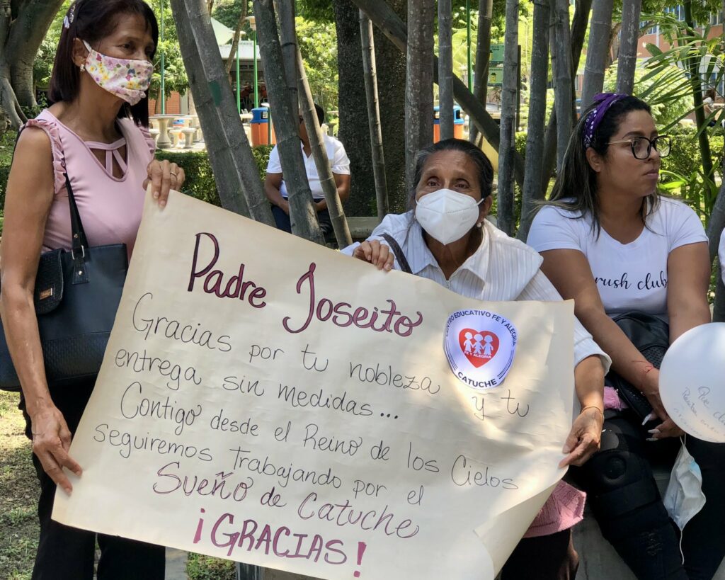 Hombres y mujeres de diferentes edades llevaban globos y pancartas con mensajes para el él. Entre ellos se percibía la profunda gratitud hacia quien fue guía espiritual y compañero de lucha por condiciones de vida digna. Con lágrimas en los ojos, muchos hablaban de todo el trabajo que -desde finales de 1999, cuando se desbordó la quebrada de Catuche- el padre hizo en el sector para ayudar a construir, de la mano de los propios vecinos, un pequeño complejo habitacional en el que habitan 400 familias.