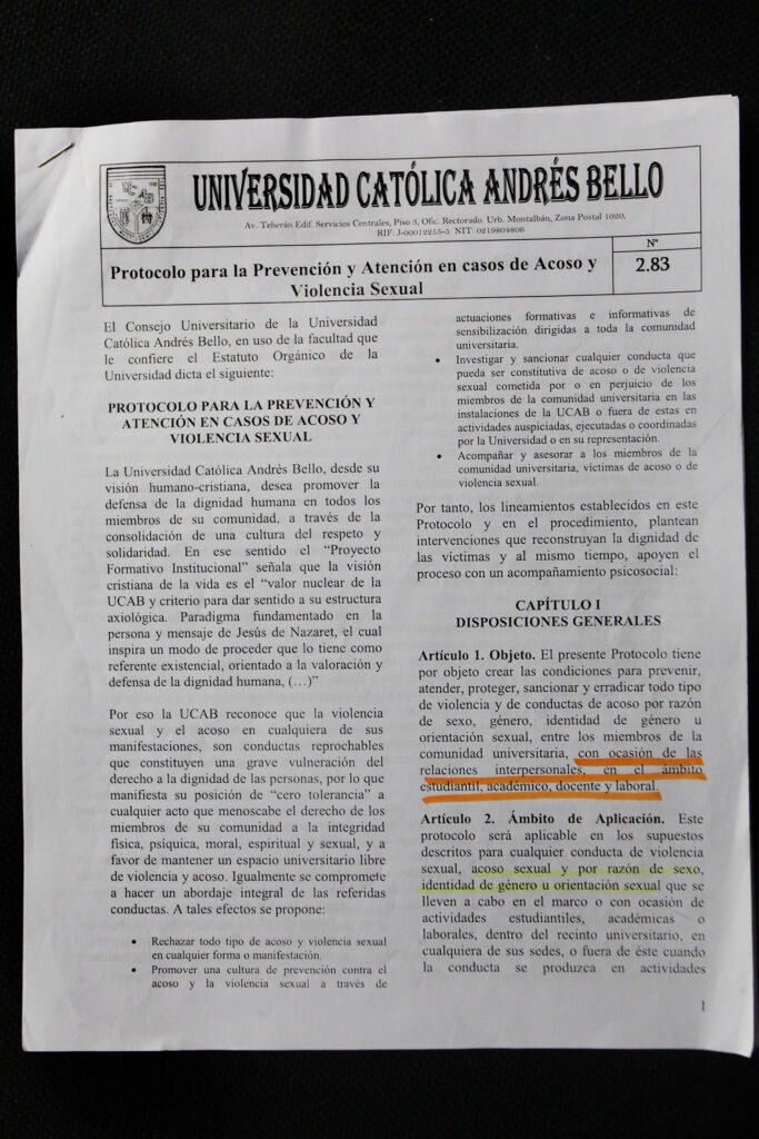 Quienes deseen leer el Protocolo para la prevención y atención en casos de acoso y violencia sexual de la UCAB pueden hacer clic aquí