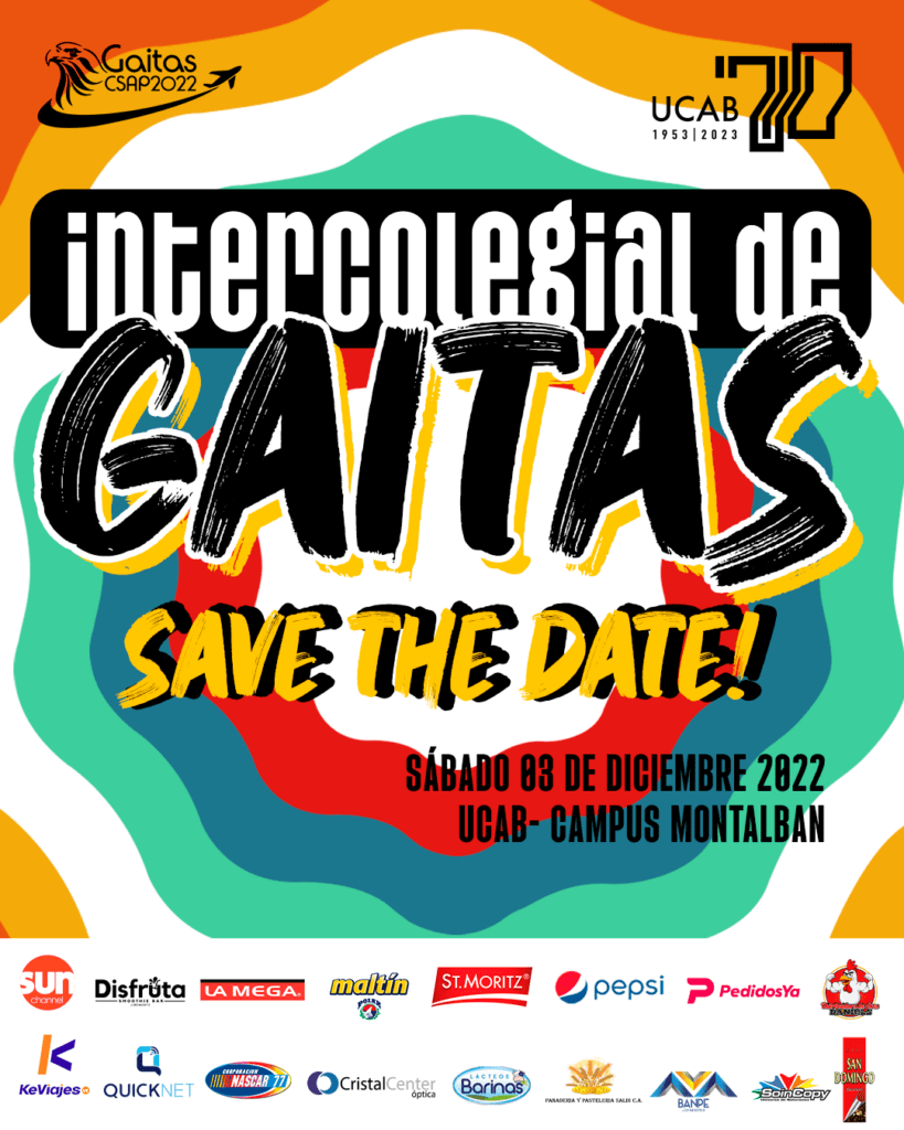 Las entradas al Intercolegial de Gaitas CSAP-UCAB 2022 tendrán un costo de 20 dólares y podrán adquirirse en el Módulo 3 del Edificio de Aulas y en la Feria de Comida de la UCAB. También estarán disponibles en los espacios del Colegio San Agustín El Paraíso.