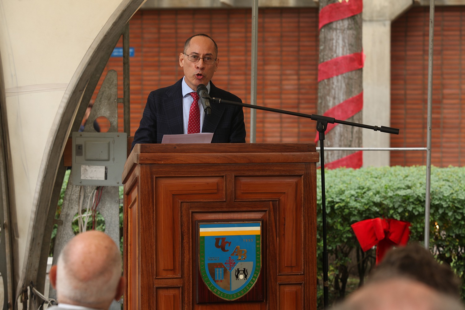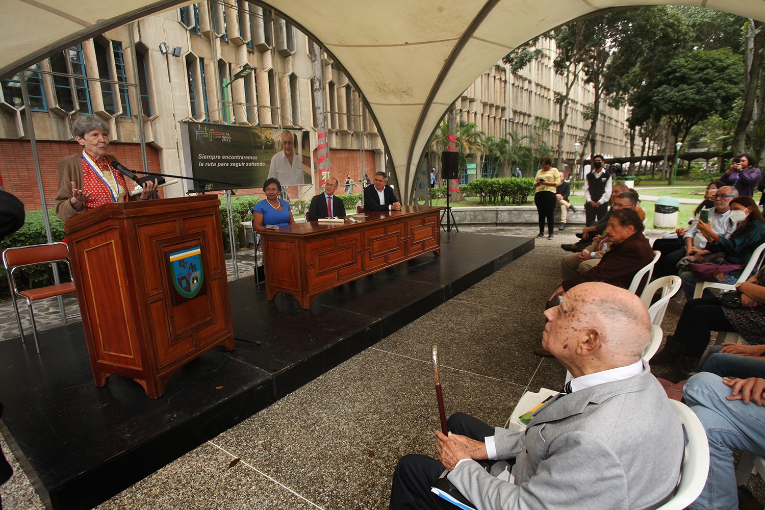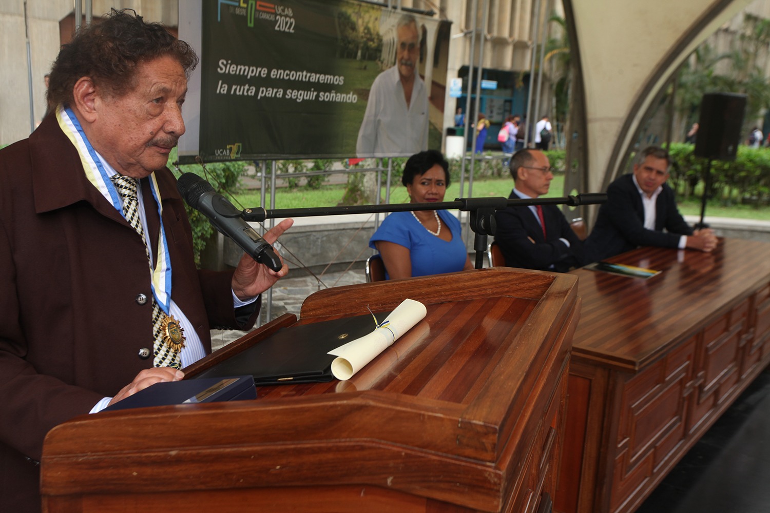 “Cuando estábamos con el mural, una donación de Telefónica Movistar, me propusieron que fuera en otro lugar y yo preferí que fuera aquí en la universidad, porque es un mural que debería conservarse y la universidad garantiza eso. Doy gracias al padre Virtuoso y a los profesores Humberto Valdivieso y Mabel Calderín. El padre Virtuoso dijo que quería darme esta condecoración. Lo recuerdo y le doy las gracias por haber tomado en cuenta mis posibilidades artísticas”, dijo al aceptar la distinción, luego de lo cual hizo votos para que las autoridades ucabistas hagan lo propio para conseguir una declaratoria de patrimonio cultural como la que tiene, desde el año 2000, la Universidad Central de Venezuela (UCV).