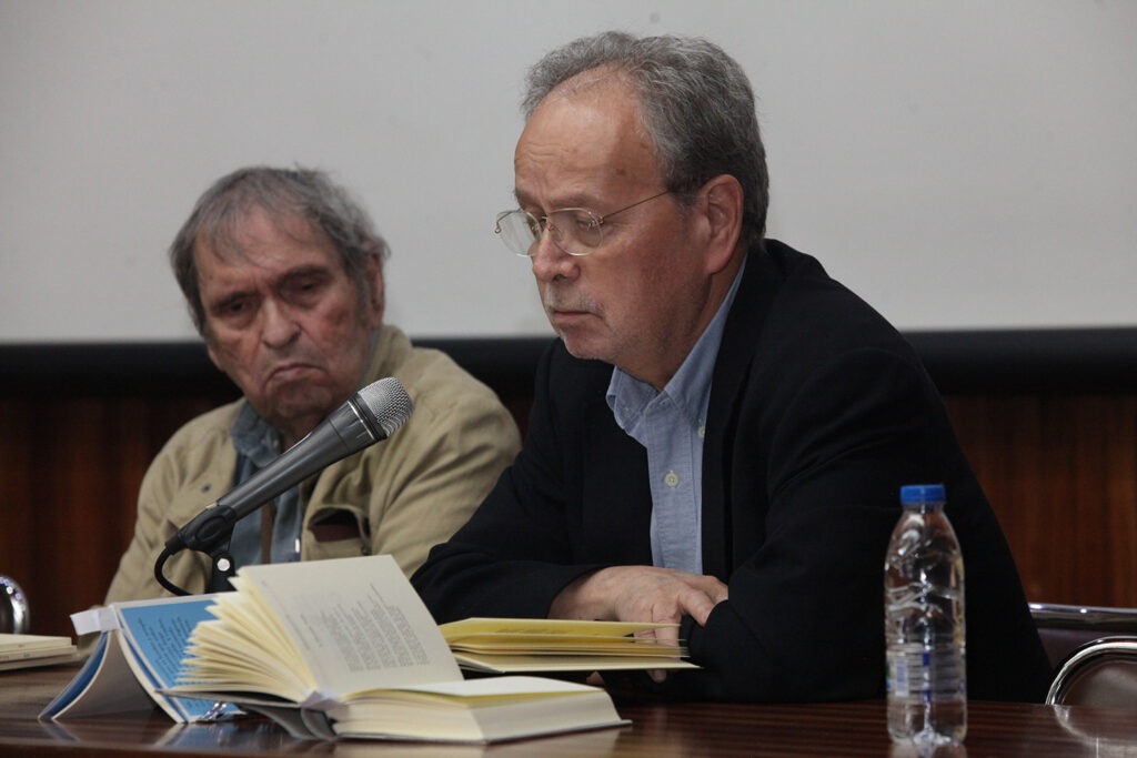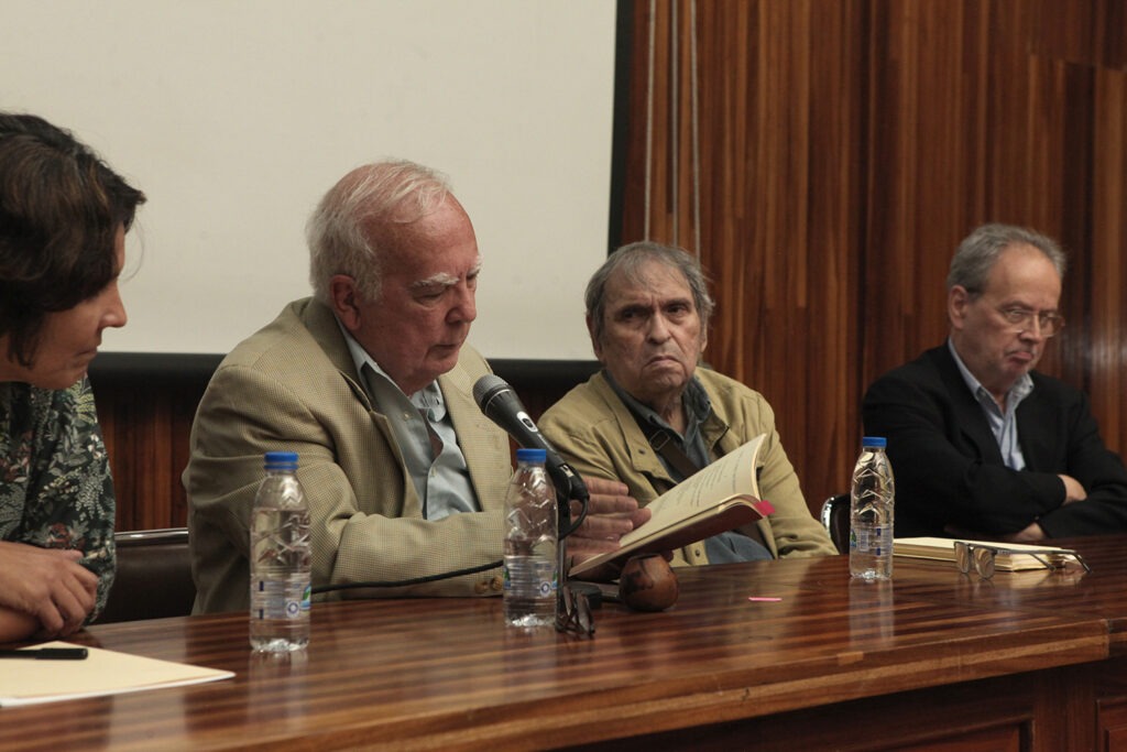 El escritor, poeta y traductor de origen canario fue el primero en leer unos versos de su autoría. Pero antes celebró la presencia masiva de estudiantes en la sala: «Me gustaría comenzar esta lectura rindiendo un homenaje a la juventud, a la hoy dominante mayoritaria en esta sala. Pero no a la juventud en abstracto, sino a una clase de juventud que es la que verdaderamente me importa: la juventud comprometida, consciente del mundo en el que vive, la juventud para la cual el futuro es una conquista«, afirmó Sánchez Robayna.