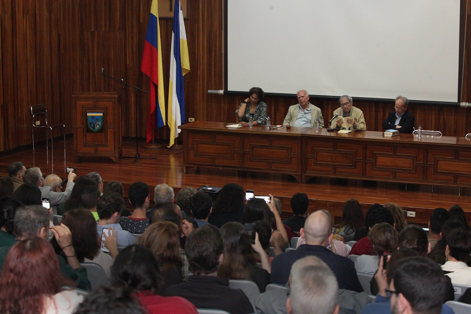 «Estoy tan impresionado por la belleza de esta universidad precisamente cuando las públicas están en su peor momento. Usar la palabra crisis para referirnos a esas universidades sería un eufemismo, el problema es mucho más profundo. Cada vez que tengo oportunidad de hablar, las defiendo. Y eso es inseparable de la defensa de la democracia. También estoy impresionado por ustedes porque yo pensé que íbamos a leer para 20 o 30 personas y ahora estoy asustado«, dijo ante las más de 180 personas que hicieron fila para conseguir un puesto en el auditorio.