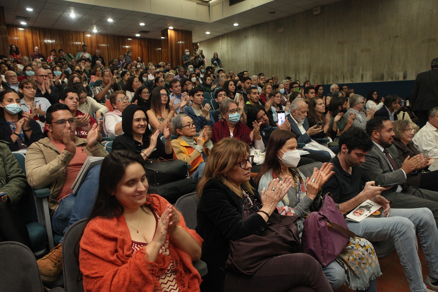 «El primer verso es importante para nosotros, sobre lo difícil que es aceptar la realidad. ‘Bienvenida alegría, bienvenido pesar’, pero noten las afinidades que hay entre los escritores. Hay una frase de Teresa la Santa, pero ella no se sentía santa. ‘Hay que tomar alegremente lo sabroso como lo amargo'», concluyó, luego de lo cual recibió de los asistentes una ovación que duró varios minutos.