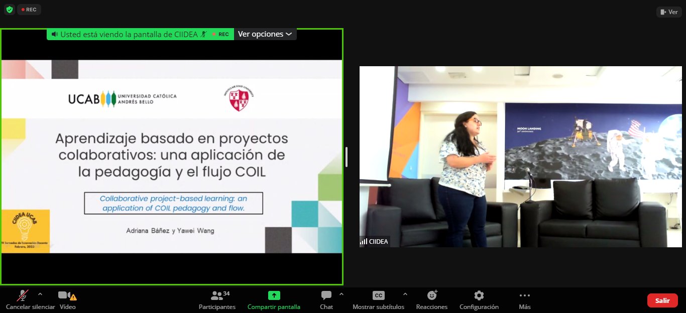 Como parte de las jornadas, el docente y comunicador social José Luis Jiménez dictó una charla sobre los programas de Aprendizaje Internacional Colaborativo en Línea (COIL por sus siglas en inglés). De forma breve, el coordinador de los COIL en la UCAB ofreció un recorrido por la historia de este proyecto, su alcance, beneficios y ventajas para los docentes ucabistas y sus alumnos. Además, recalcó que quienes participan en esta dinámica de intercambio con otras universidades del mundo reciben un certificado por el CIAP por haber completado el proceso formativo, a modo de diplomado.