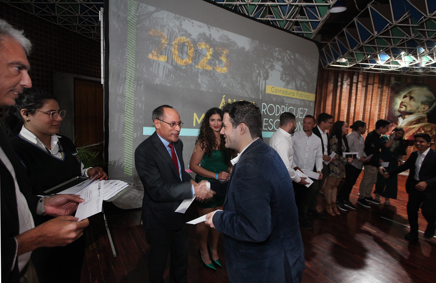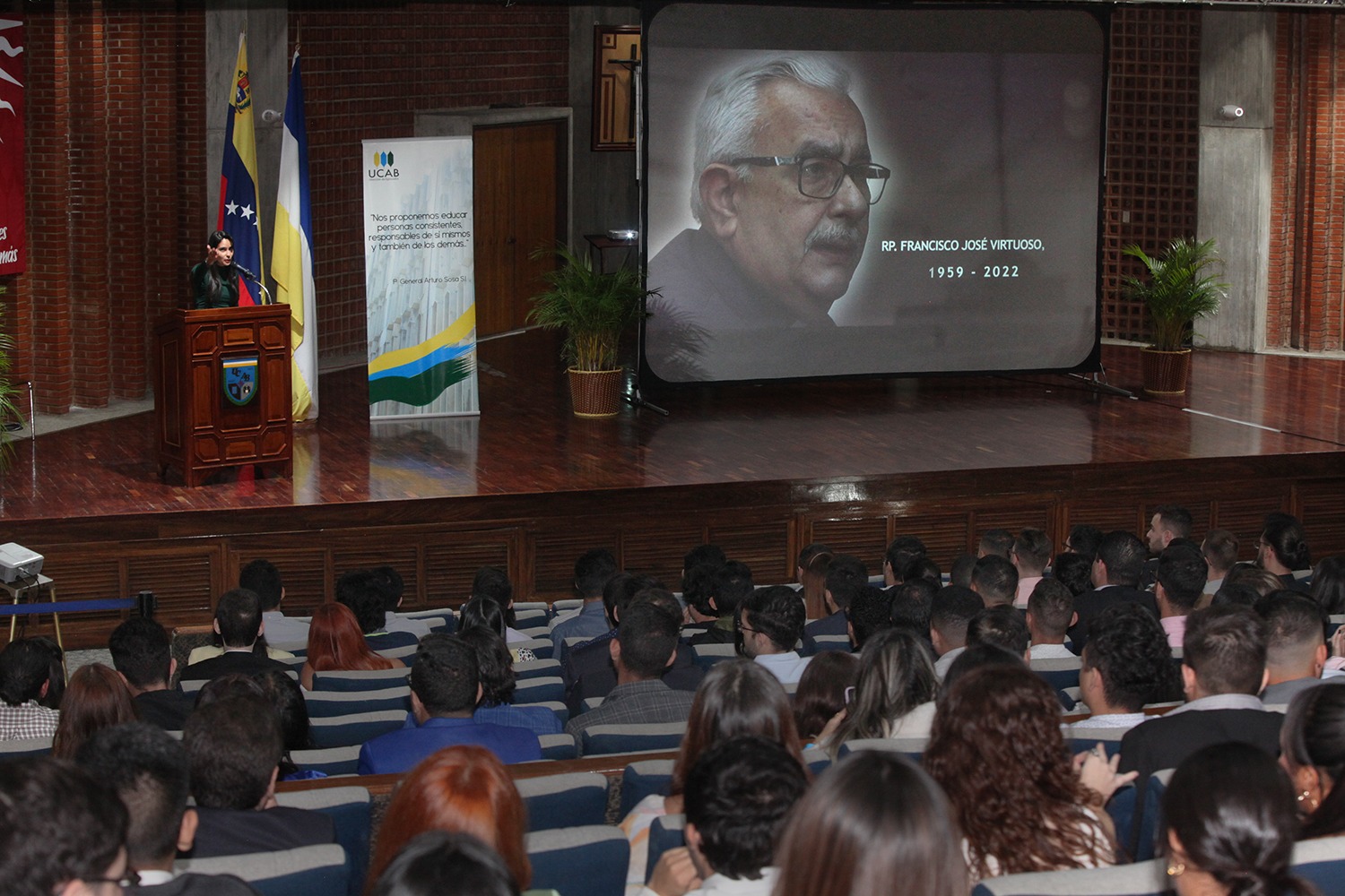 Durante la actividad se rindió un pequeño homenaje póstumo al recién fallecido rector, Francisco José Virtuoso, s.j., y se recordó su legado de trabajo por la excelencia académica de la universidad.Los graduandos de la «Clase 2023» también tuvieron la oportunidad de escuchar un mensaje de los padrinos de su promoción.