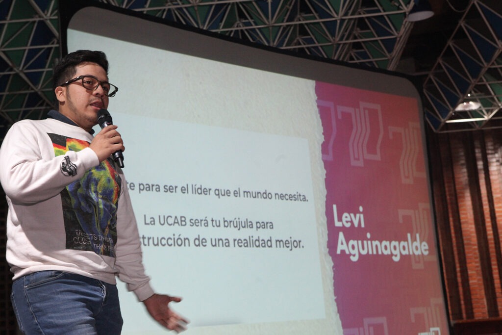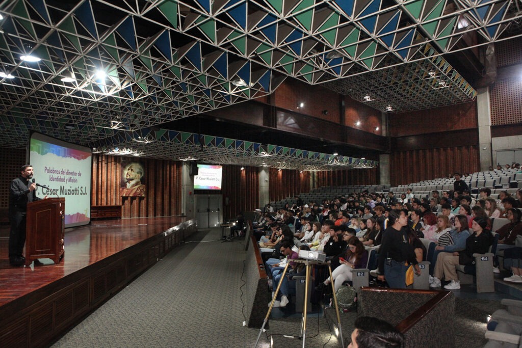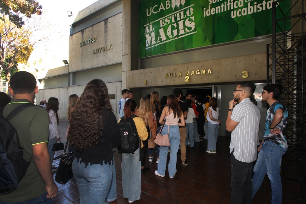 El acto central tuvo lugar, desde las 9:00 a.m. en el Aula Magna de la UCAB, donde los muchachos se congregaron para escuchar las intervenciones de autoridades universitarias, profesores y dirigentes estudiantiles, quienes les ofrecieron algunas orientaciones sobre lo que será su quehacer universitario.