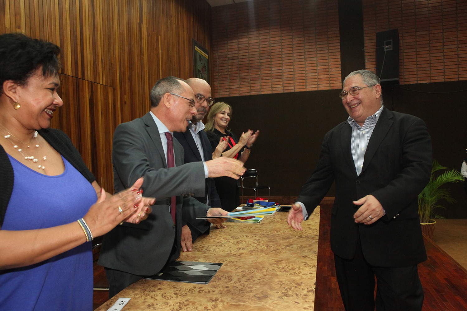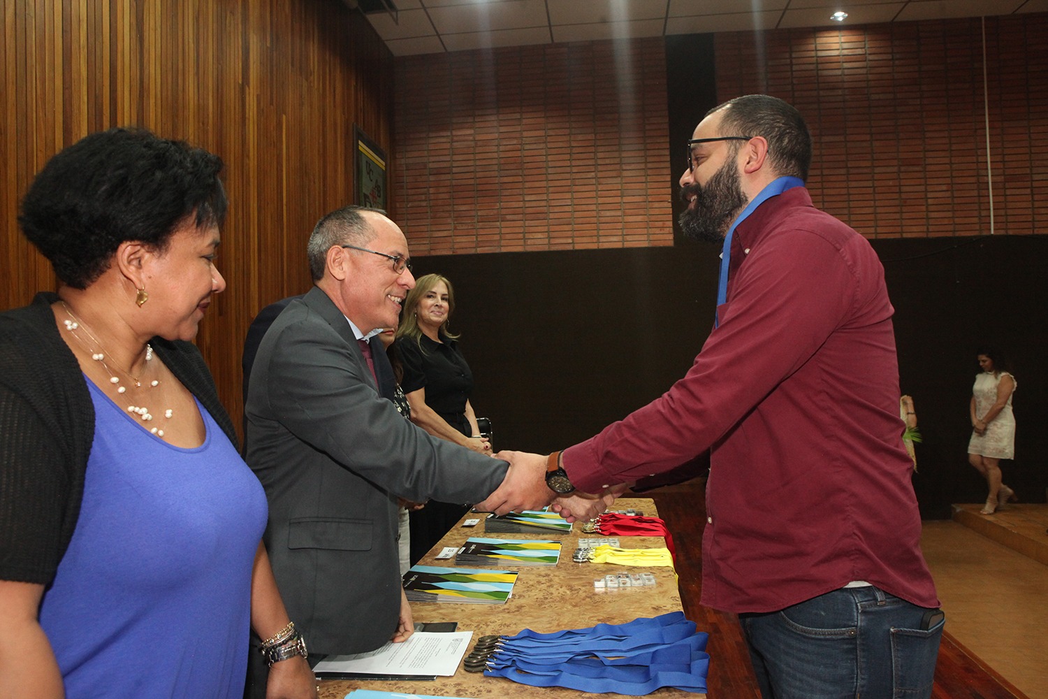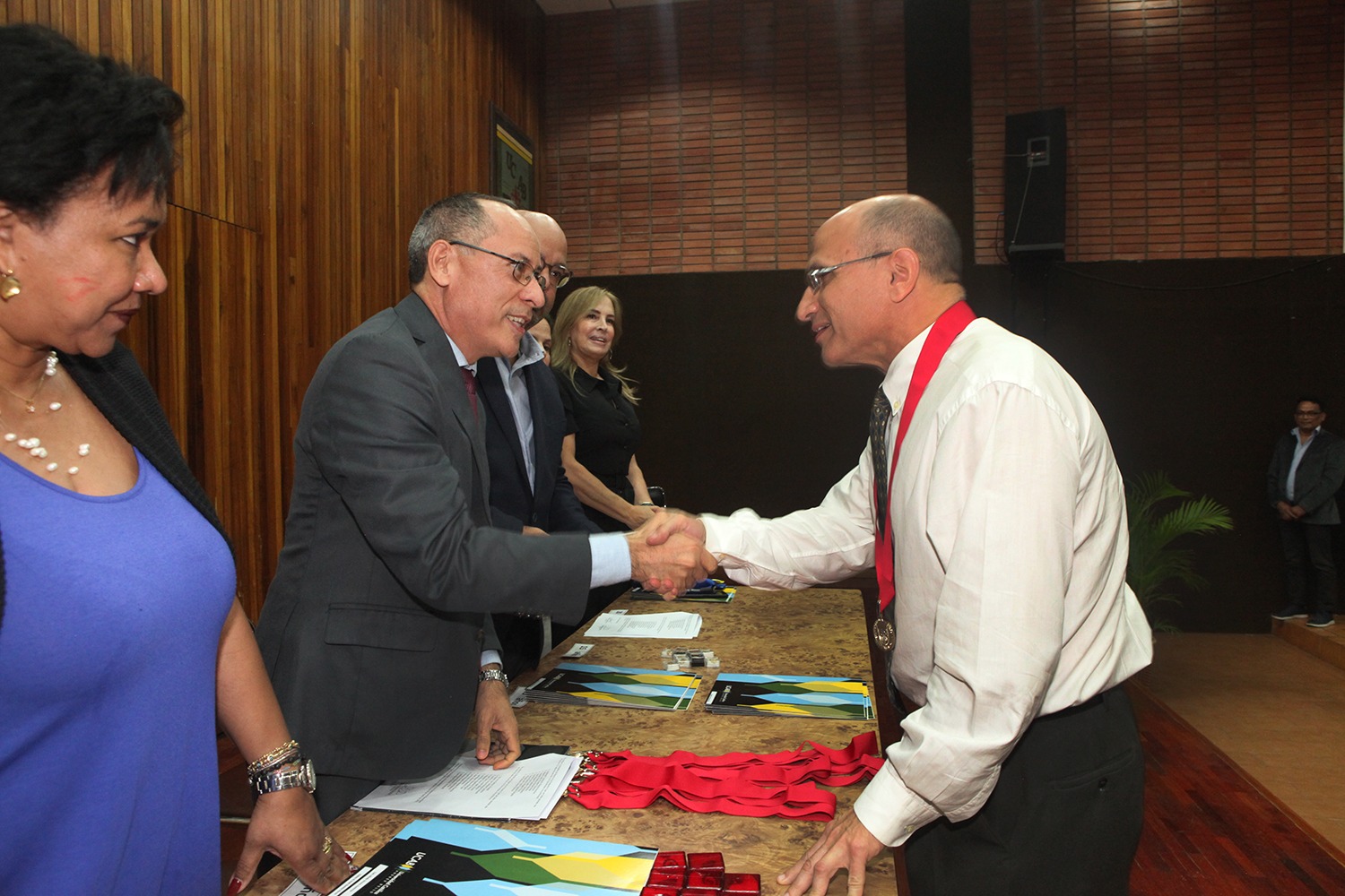 Otro de los grandes condecorados de la jornada vespertina fue el profesor Guillermo Yáber Oltra, director del Centro de Investigación, Innovación y Desarrollo Académico (CIIDEA). El psicólogo recibió una medalla y diploma por sus 46 años de labor docente y consiguió un diploma por su productividad como investigador. Calificó el homenaje como «una de las cosas más grandes» que guarda en su corazón, a la vez que agradeció el apoyo que la UCAB le brinda a la investigación, área que -recordó- «es la que promueve el progreso».
