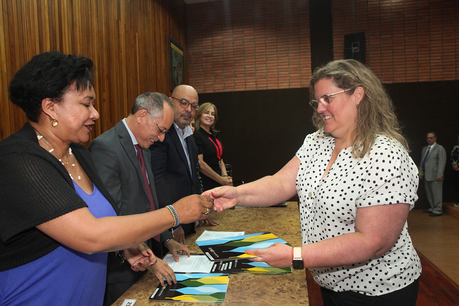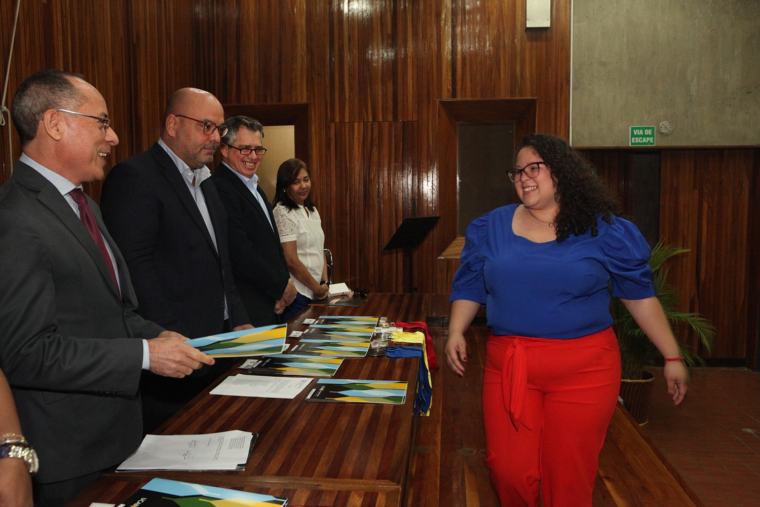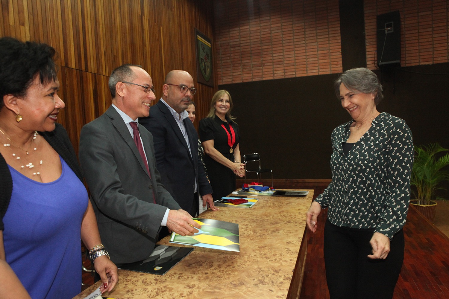 Nicolasa Martínez de Arcia recibió una condecoración por más de 30 años de servicio. «Desde que llegué he trabajado por el usuario. Pero para mí es muy emocionante porque la hemos pasado muy bien en Biblioteca Central, la biblioteca antigua y la biblioteca nueva. Y aquí vamos hacia adelante, pero siempre con un solo pensamiento: dar lo mejor de uno, que los demás aprendan y nosotros también aprender. Pero eso tiene qué ver con ser ucabista porque es estar comprometido con la universidad y también con el país; sacarlo adelante. Y creo que desde La Católica se hace eso exactamente», afirmó Martínez.