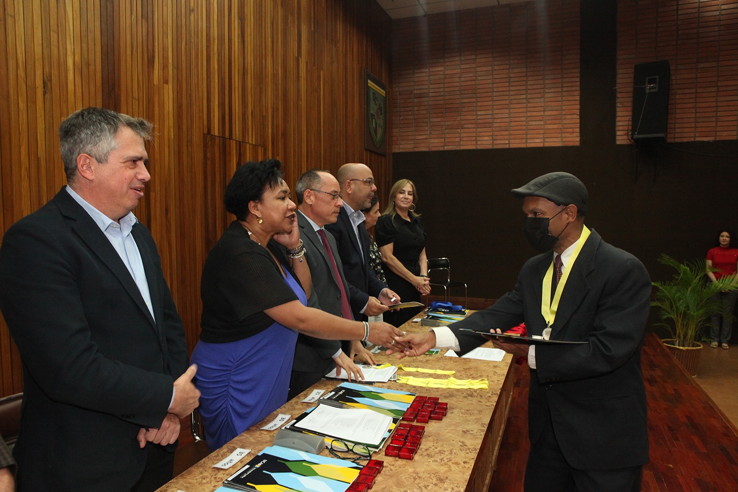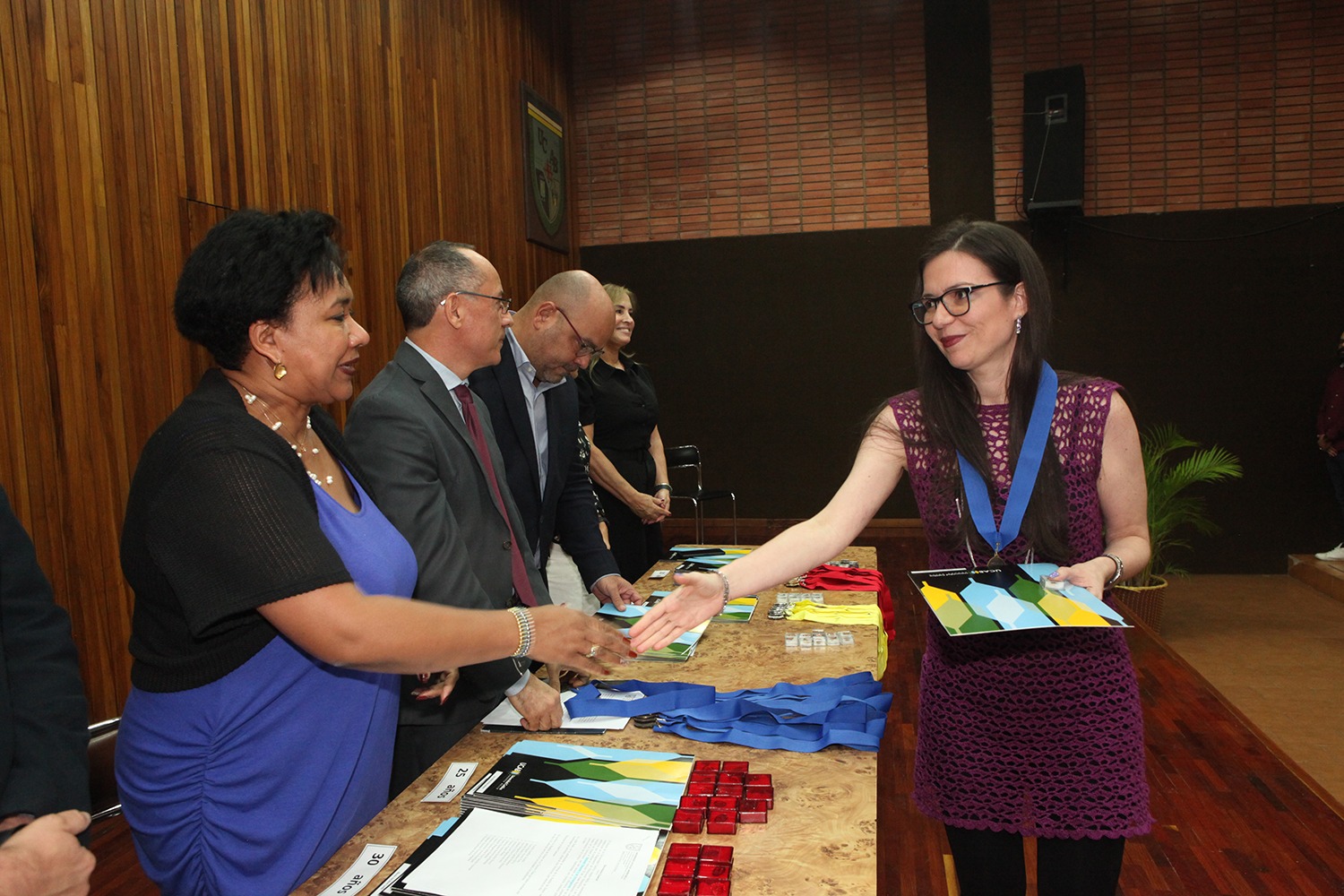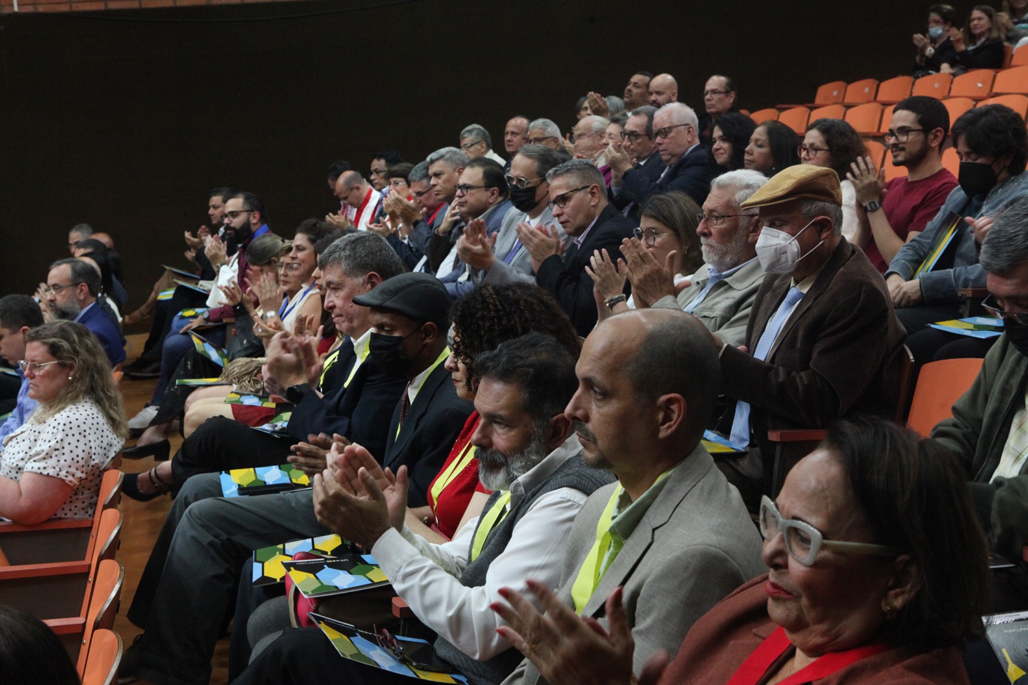 En el acto de la tarde, las autoridades académicas -acompañadas por Margarita Meneses, representante del Sindicato de Profesores de la universidad- otorgaron condecoraciones a 66 docentes por sus años de servicio. Además, 31 investigadores activos de distintos centros e institutos de la UCAB fueron honrados por su productividad durante el año, así como también se entregaron oficialmente los galardones a los autores de los seis trabajos ganadores del Premio a la Investigación Docente 2021-2022, otorgado por el Consejo de Desarrollo Científico, Humanístico y Tecnológico de la universidad.