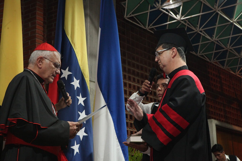 El acto se llevó a cabo este martes 2 de mayo en el Aula Magna del campus Montalbán de la universidad y fue presidido por el cardenal Baltazar Porras, arzobispo de Caracas y canciller de la UCAB, y el padre Alfredo Infante, S.J., provincial de la Compañía de la Compañía de Jesús en Venezuela y vicecanciller de la UCAB.