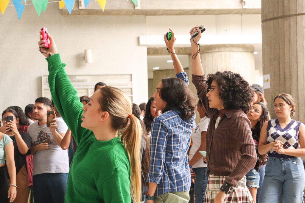 Añadió que para esta muestra de propuestas, «innovamos poniendo especial atención al elemento tecnológico”. Explicó que durante la feria, los ucabistas pudieron hacer uso de una pantalla gigante como recurso para la realización de dinámicas lúdicas, como el popular juego de carreras Mario Kart y el conocido juego de baile Just Dance.