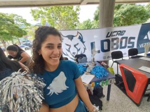 Desde la «Calle Deportiva», Paola Briceño se encargó de promocionar el Club de Porrismo UCAB y celebró que existan oportunidades como las que brinda la universidad más allá de la formación en clases. En su penúltimo semestre de Ingeniería Industrial, dijo sentirse orgullosa de formar parte de “una carrera diversa”, donde sus estudiantes suelen participar en múltiples actividades extracurriculares, dentro y fuera de la universidad.