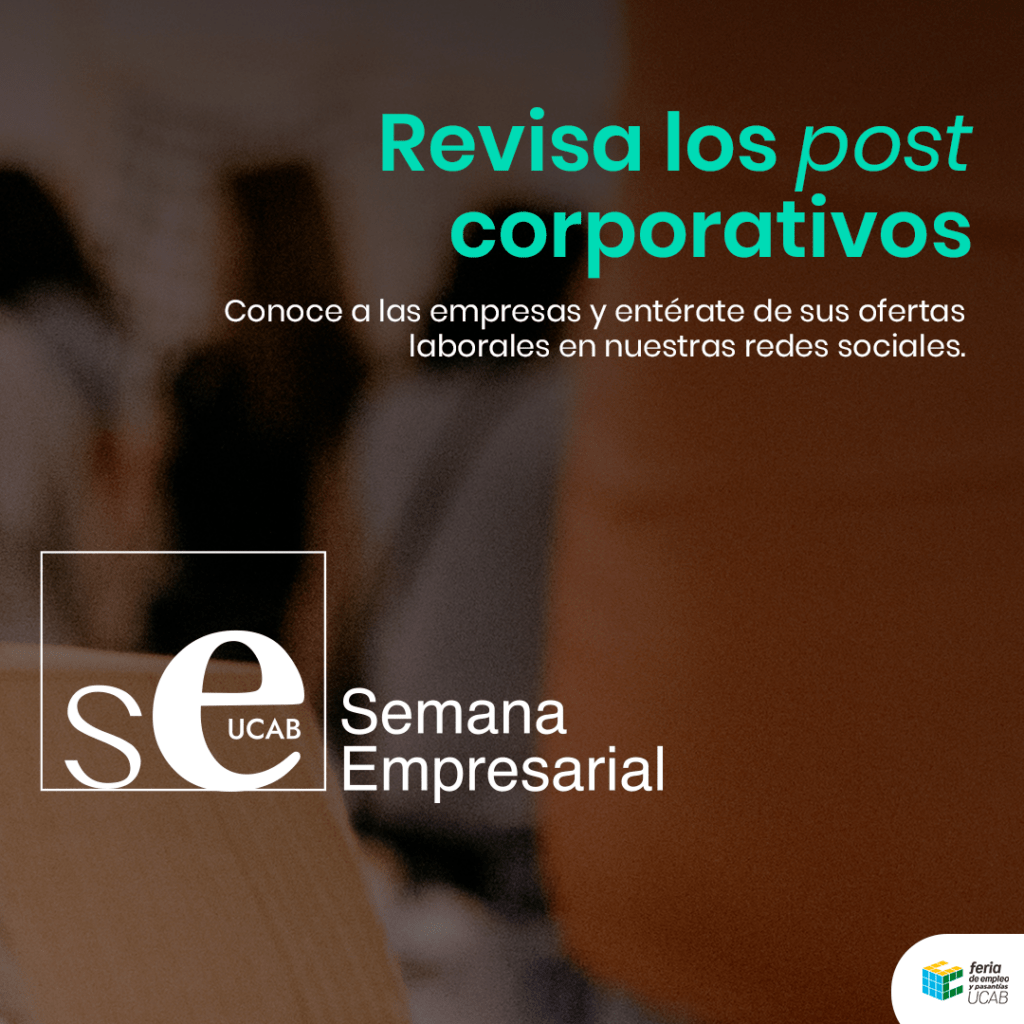 Esta actividad se realizará en la PB del edificio Cincuentenario y tendrá una versión a través de las redes sociales de la Dirección de Egresados (@Egresados_UCAB), en donde se publicarán las ofertas laborales de las empresas participantes y se realizarán charlas informativas sobre distintos temas relacionados con el mundo laboral.
