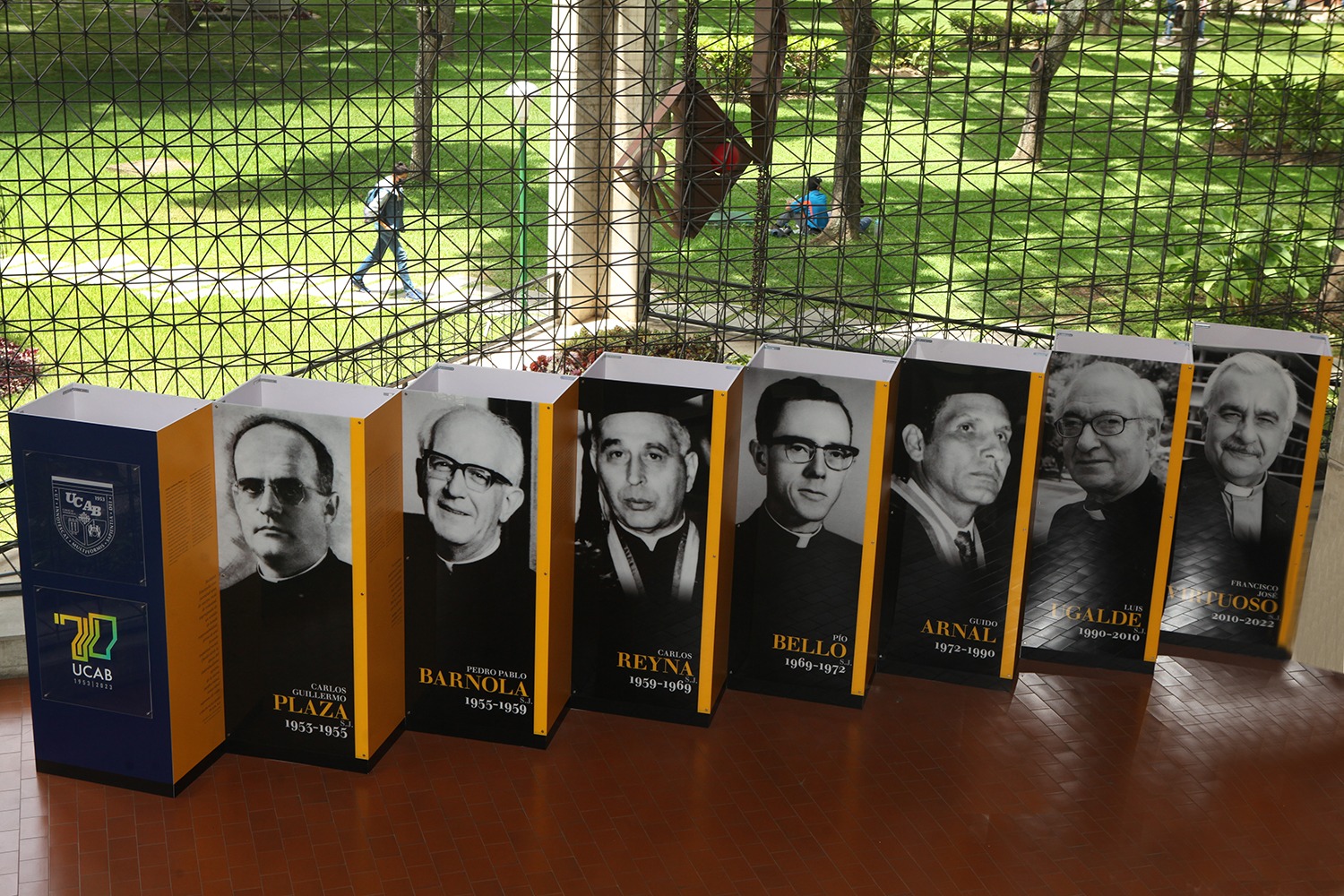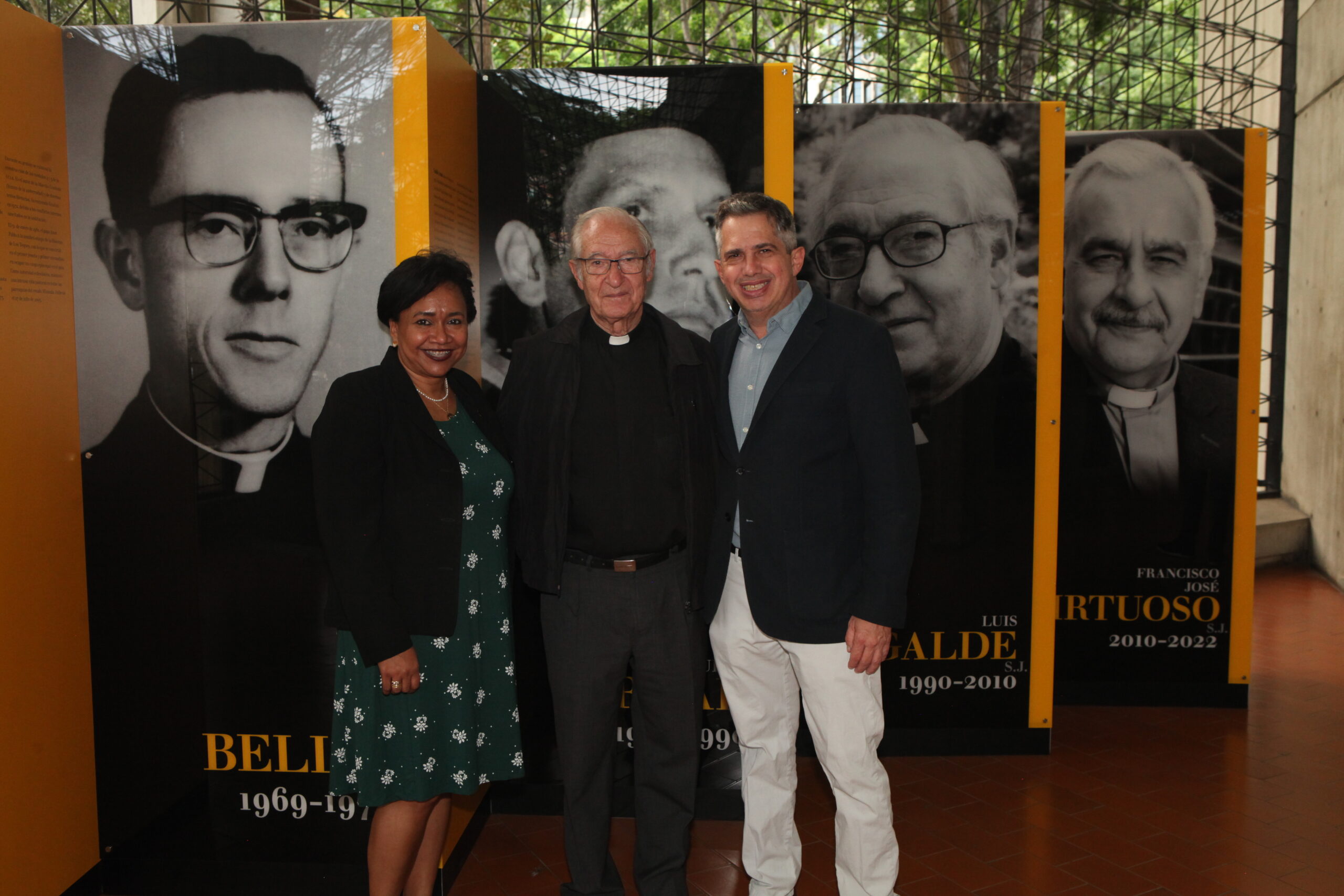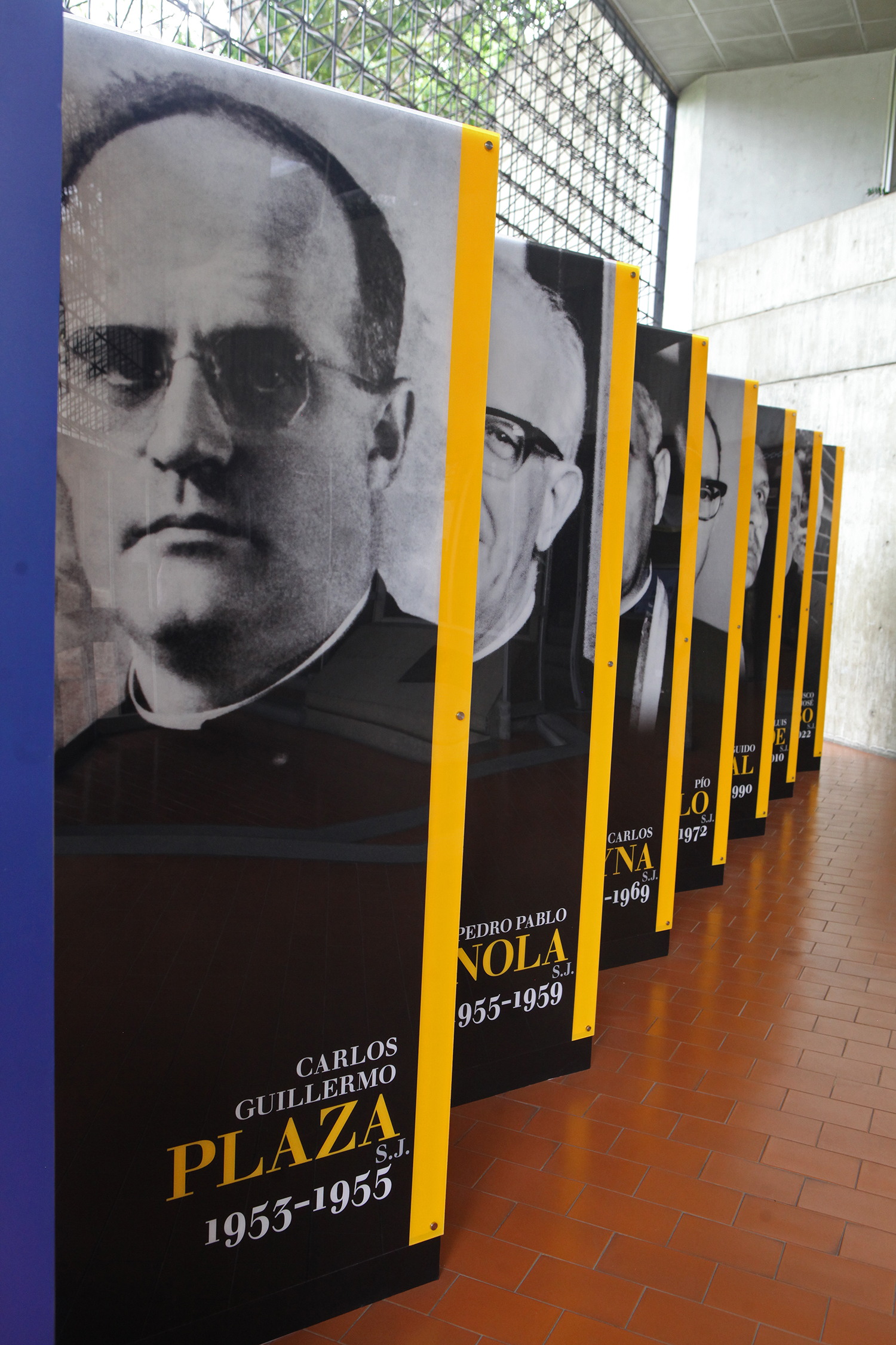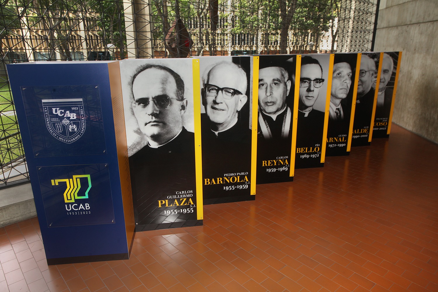 El conjunto de fotografías y biografías de los siete rectores se encuentra expuesto en la planta baja del edificio de Servicios Centrales del campus Montalbán y muestra a los protagonistas, de izquierda a derecha, en el orden de sus ejercicios: Carlos Guillermo Plaza, S.J. (1953-1955); Pedro Pablo Barnola, S.J. (1955-1959); Carlos Reyna, S.J. (1959-1969), Pío Bello, S.J. (1969-1972); el ingeniero Guido Arnal (1972-1990), Luis Ugalde, S.J. (1990-2010) y Francisco José Virtuoso, S.J. (2010-2022).