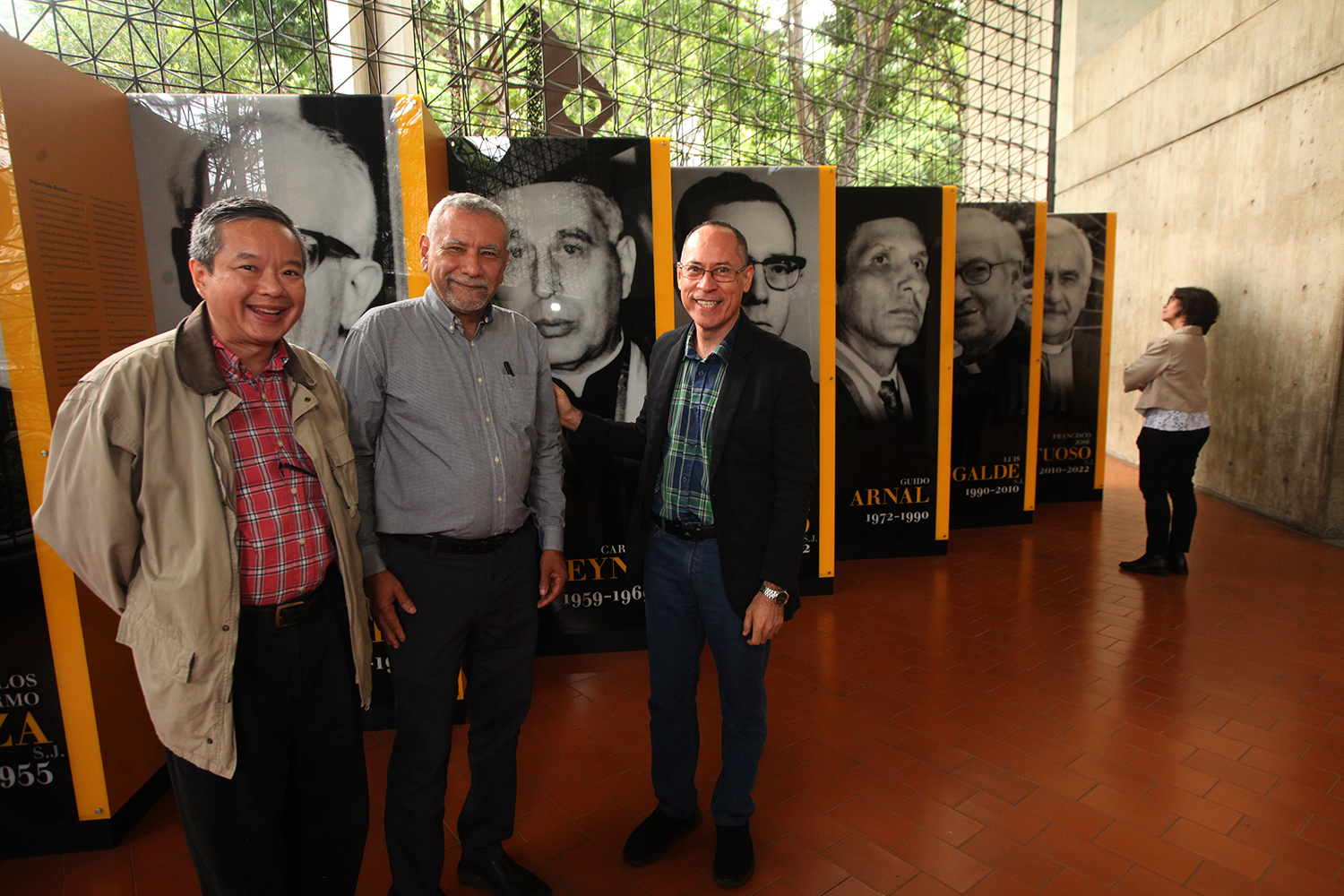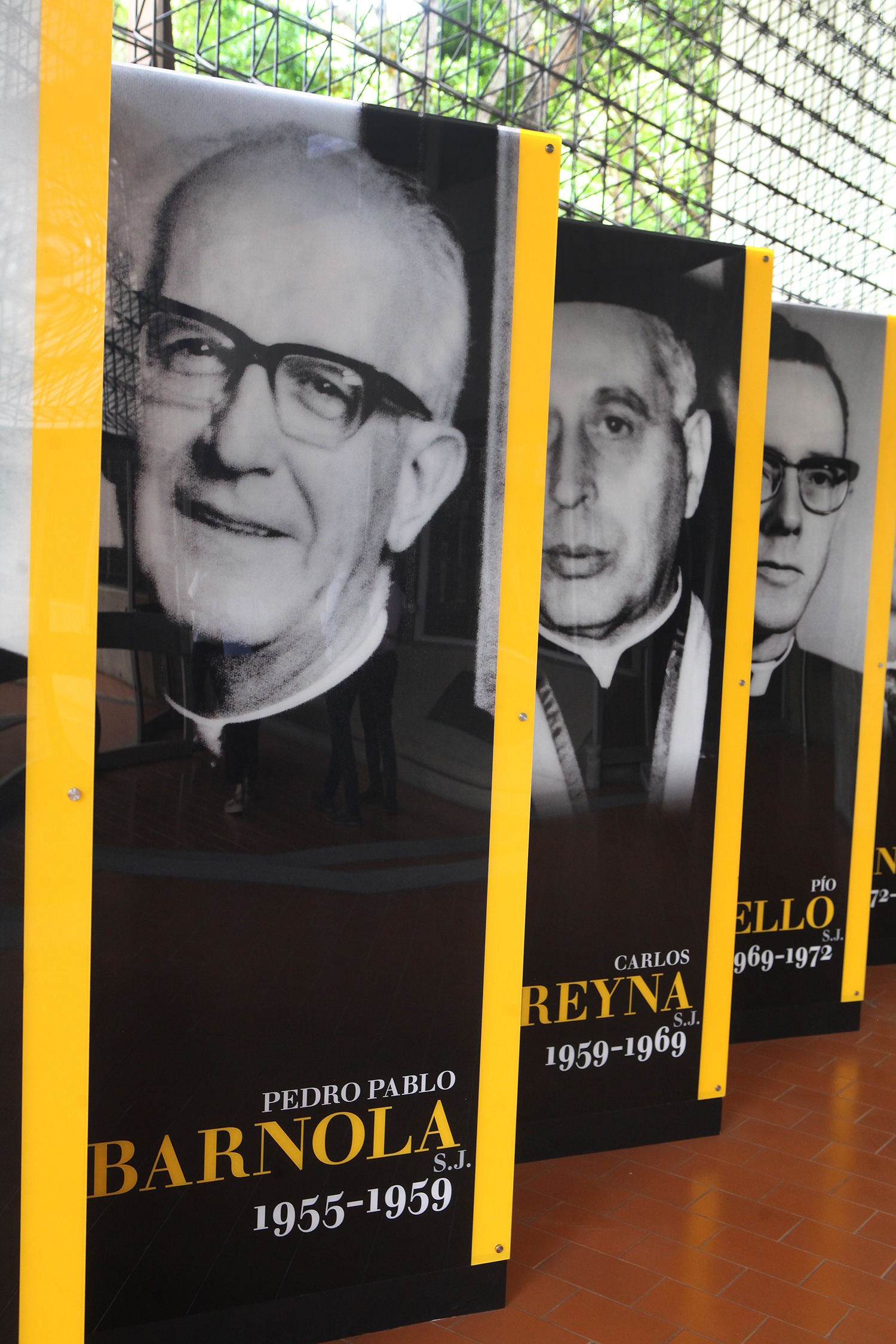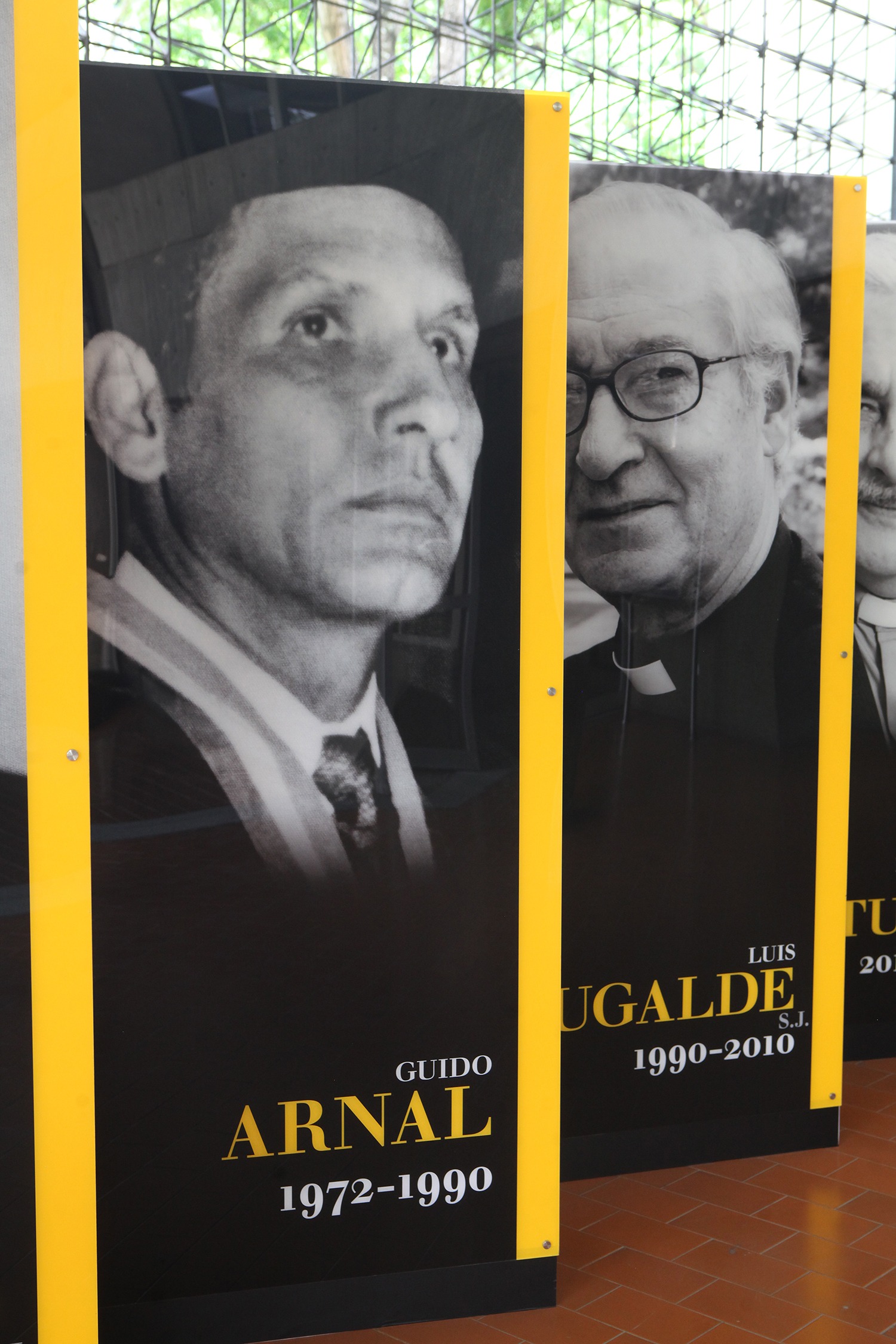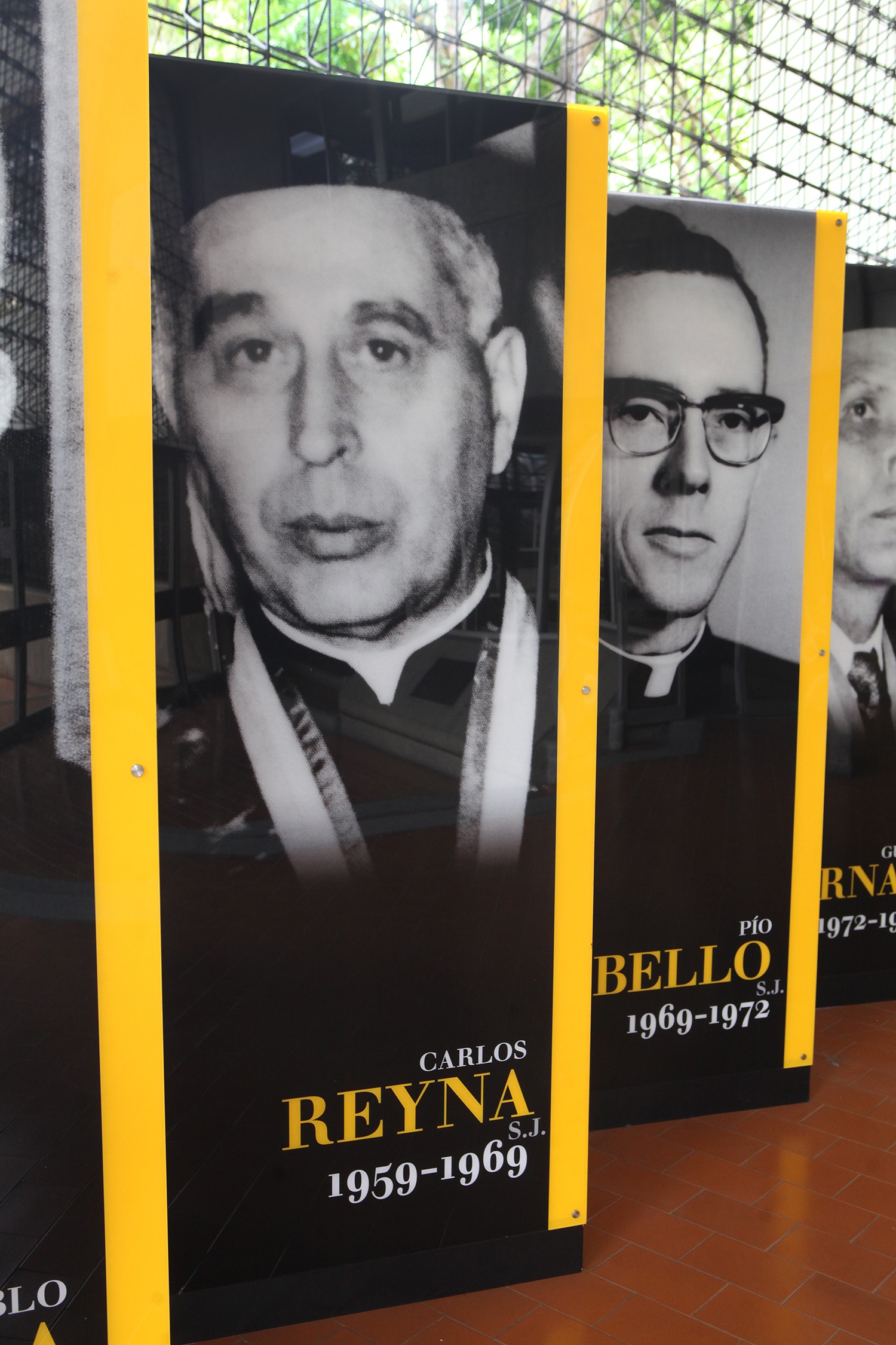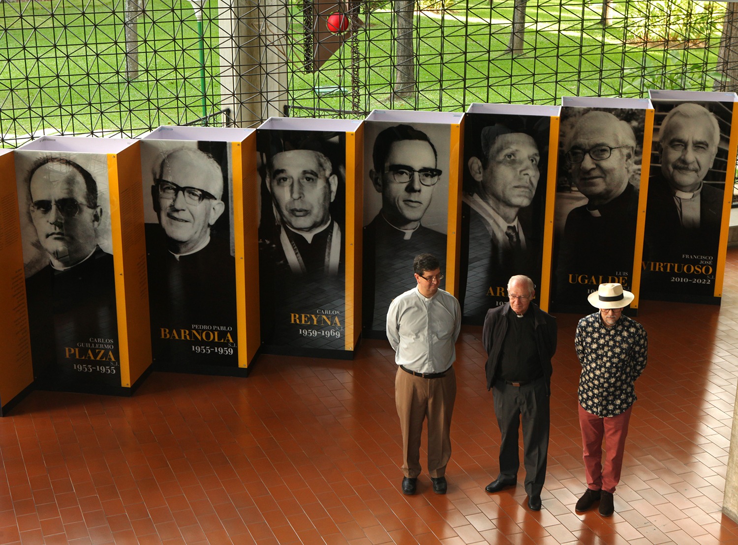 El conjunto de fotografías y biografías de los siete rectores se encuentra expuesto en la planta baja del edificio de Servicios Centrales del campus Montalbán y muestra a los protagonistas, de izquierda a derecha, en el orden de sus ejercicios: Carlos Guillermo Plaza, S.J. (1953-1955); Pedro Pablo Barnola, S.J. (1955-1959); Carlos Reyna, S.J. (1959-1969), Pío Bello, S.J. (1969-1972); el ingeniero Guido Arnal (1972-1990), Luis Ugalde, S.J. (1990-2010) y Francisco José Virtuoso, S.J. (2010-2022).