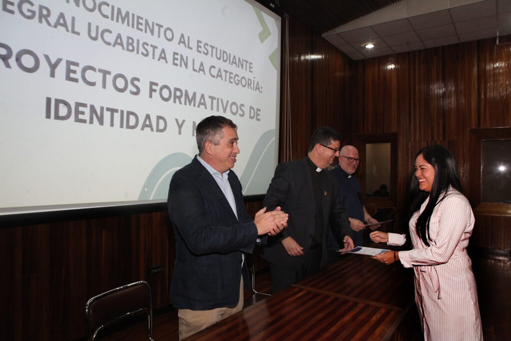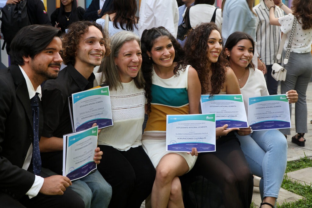 Durante el evento, un total de 25 estudiantes de diferentes carreras y facultades de la UCAB recibieron diplomas por su participación y desempeño en agrupaciones de carácter cultural, deportivo, académico, modelos y competencias, voluntariados, así como en proyectos formativos de la Dirección de Identidad y Misión.