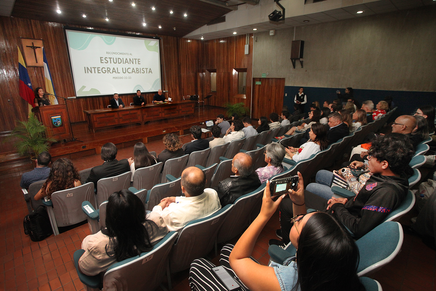 El pasado jueves 6 de julio, autoridades de la Universidad Católica Andrés Bello (UCAB) hicieron entrega del reconocimiento “Estudiante Integral Ucabista”, correspondiente al período académico 2022-2023, en el auditorio Padre Gustavo Sucre del campus Montalbán de la institución. Este galardón se otorga de manera anual a los alumnos que se destacan por su participación en actividades extracurriculares y mantienen un alto compromiso social.