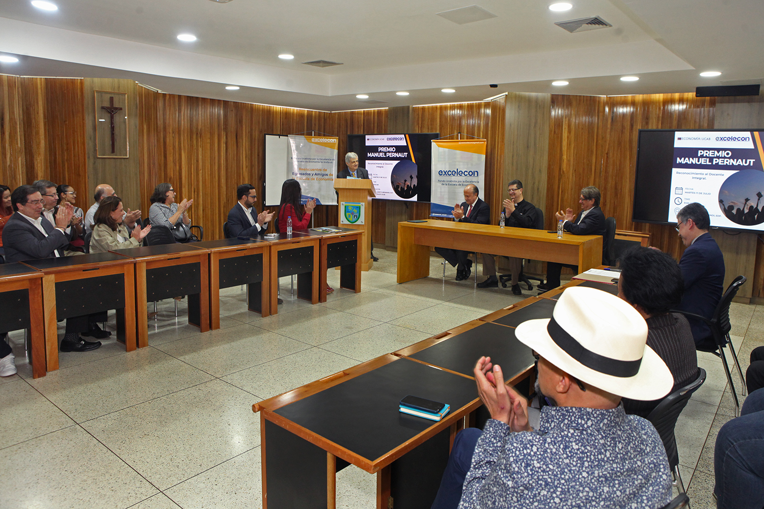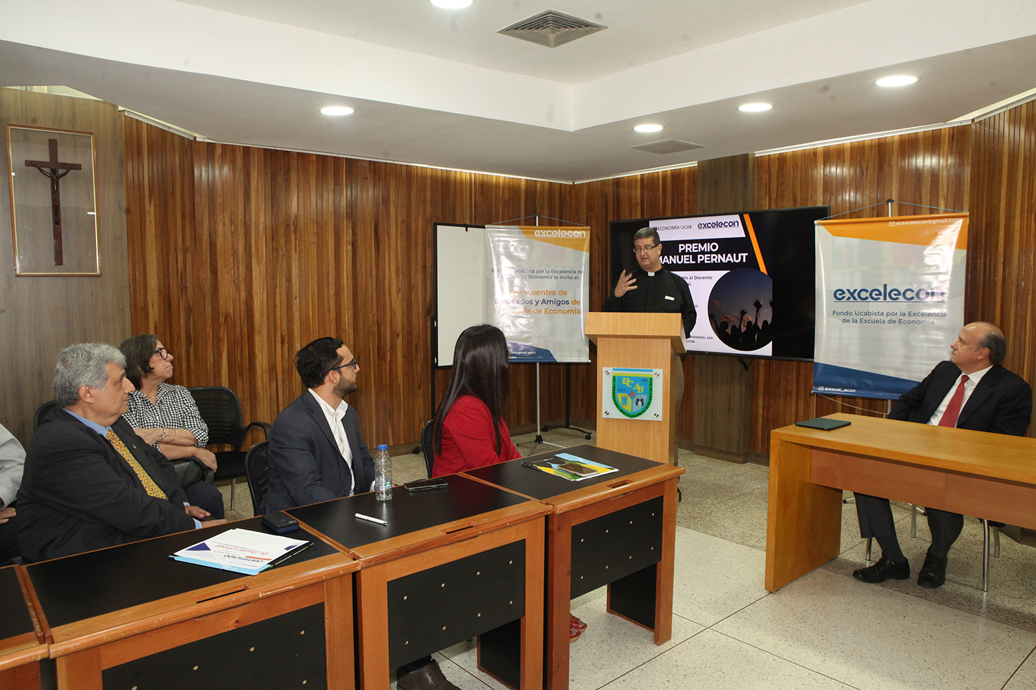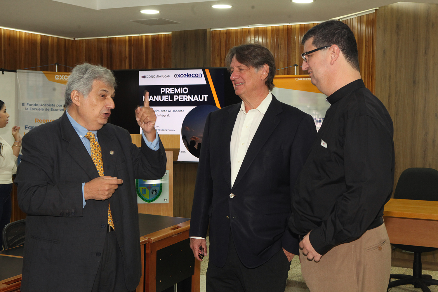 “Con este galardón queremos premiar la iniciativa de los profesores que enaltecen nuestra escuela y que son parte fundamental de la razón por la cual es considerada una de las mejores de nuestro país”, afirmó Juan Ignacio Aristeguieta, presidente de Excelecon, quien mencionó que el reconocimiento busca honrar el legado del padre Pernaut, fundador de la Facultad de Ciencias Económicas y Sociales de la UCAB, a quien recordó como “uno de los economistas más influyentes en el mundo académico venezolano”.