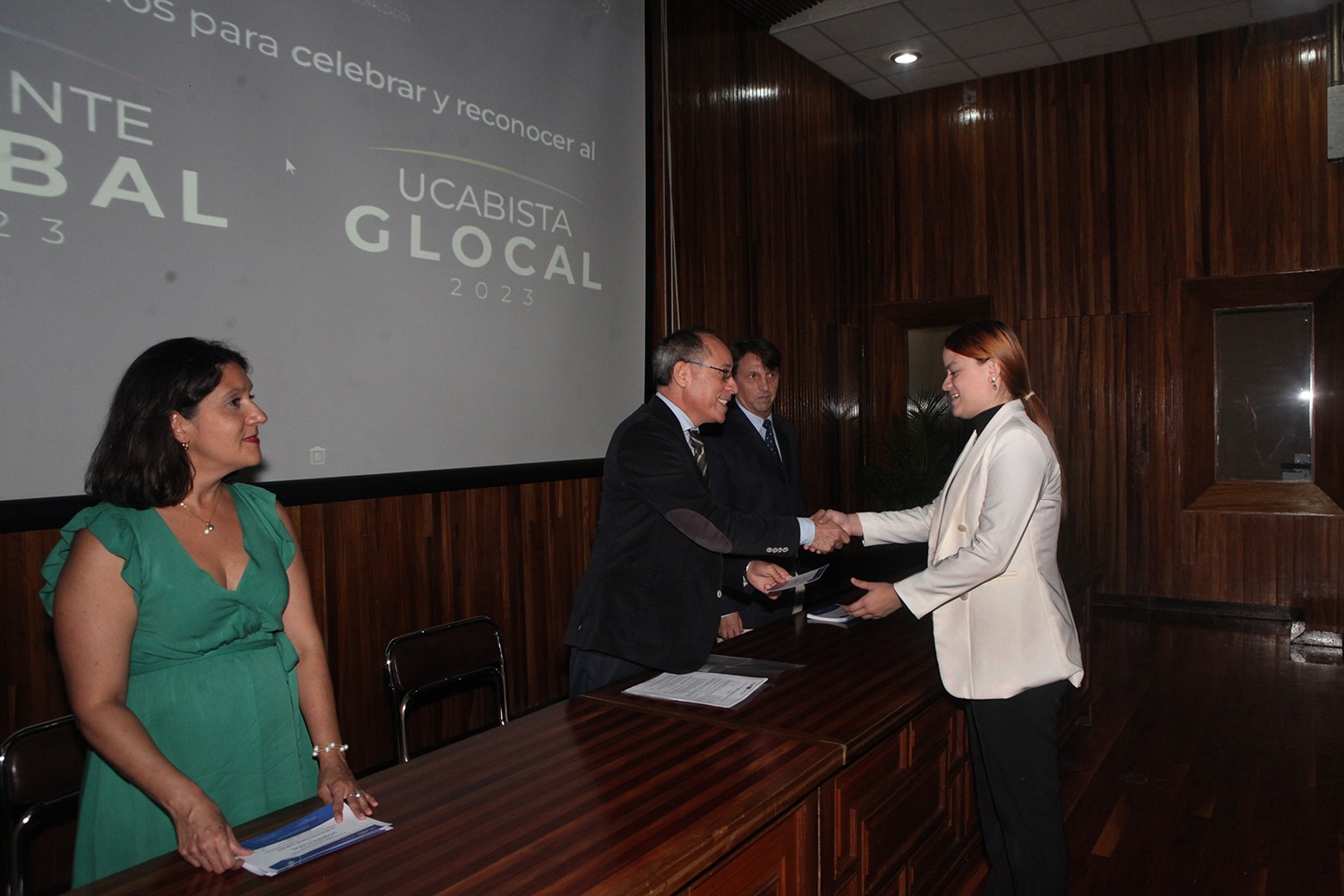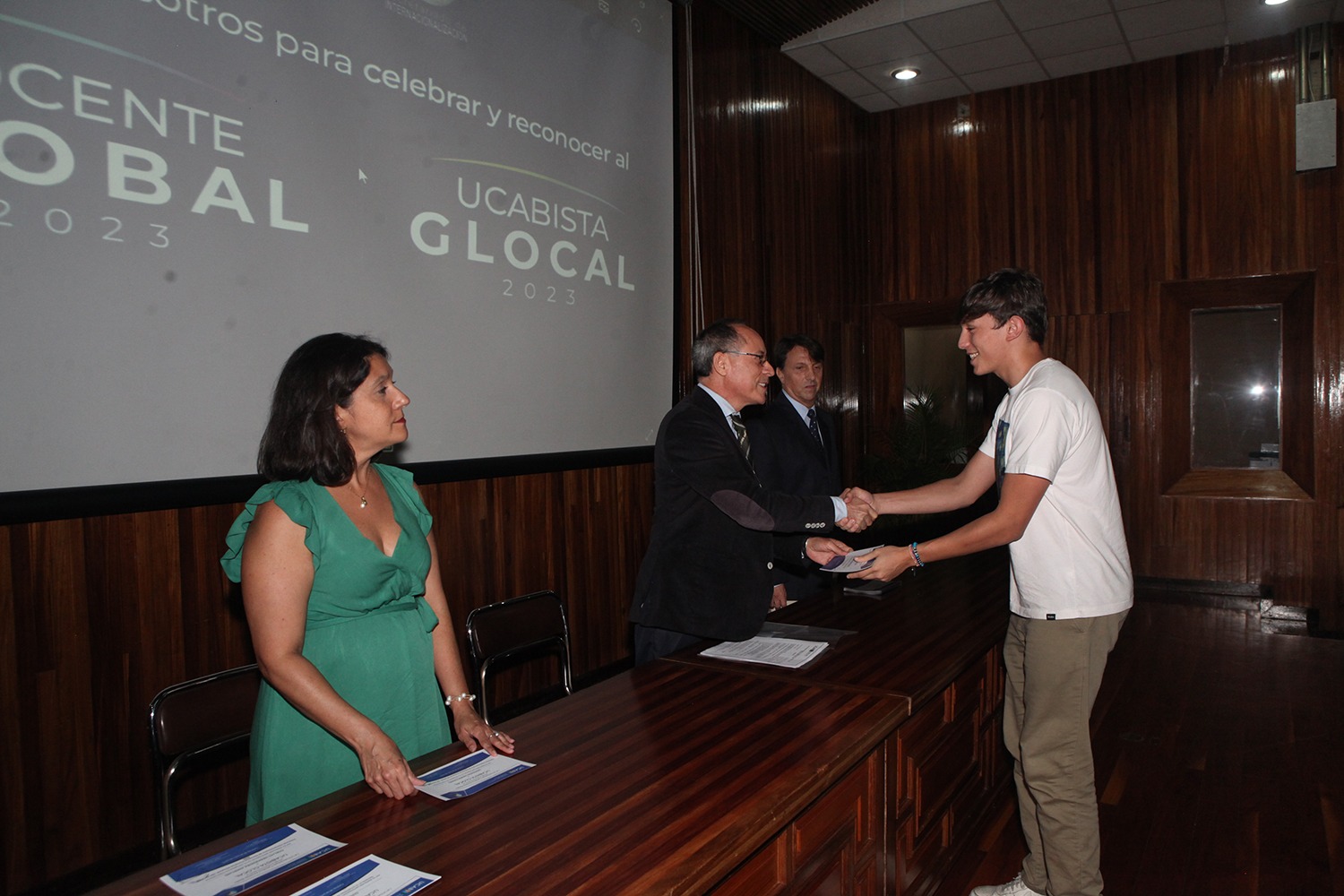 El pasado miércoles 26 de julio se hizo entrega del «Reconocimiento al Ucabista Glocal y Docente Global 2022-2023», ceremonia organizada por el Secretariado de Internacionalización de la UCAB para reconocer a los 120 estudiantes y profesores que, en nombre de la universidad, participaron en eventos académicos o promovieron actividades pedagógicas con alcance internacional.