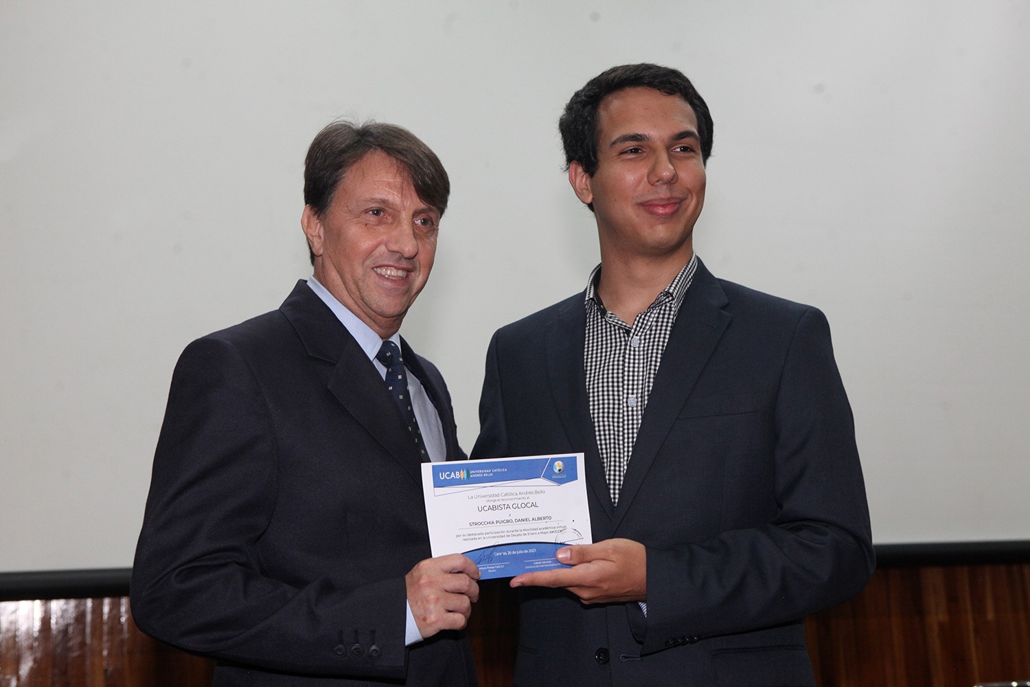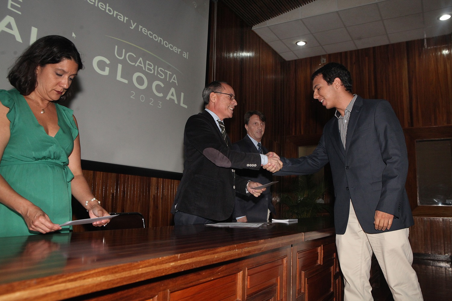 El joven Daniel Strocchia, por su parte, fue reconocido dentro del grupo de ucabistas glocales. El estudiante de octavo semestre de Derecho ha participado en varias actividades de intercambio académico internacional, y la más reciente corresponde a ser alumno de la cátedra «Business and technology», en la Universidad de Deusto (ubicada en Bilbao, España), la cual fue dictada durante un semestre y totalmente en inglés.