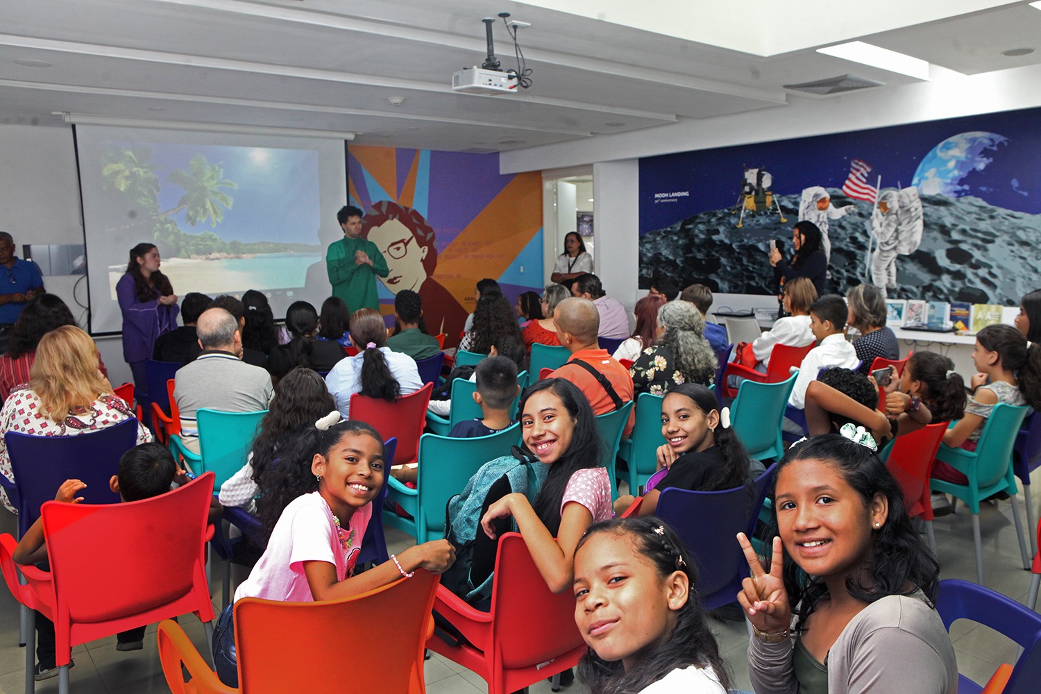 Durante la jornada, 75 niños y adolescentes que participaron en el curso presentaron sus proyectos finales, resultado de seis semanas llenas de aprendizaje en las que los muchachos desarrollaron habilidades creativas, teóricas y prácticas para contar historias desde sus propias experiencias y usando las herramientas tecnológicas asociadas a la era digital, como los teléfonos celulares, las apps y la internet.