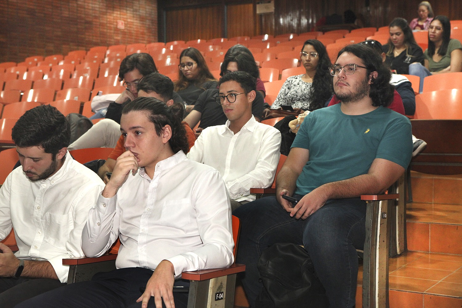 Los estudiantes Teresa Raymond y Danielo Yánez, representantes ante el Consejo de Facultad, hablaron sobre el reto que significa optar por formarse en derecho en el siglo XXI; sobre el deber de retribuir a la sociedad lo que la universidad les da, así como estudiar «lo que es y no lo que debe ser«, en referencia a las realidades que se imponen.