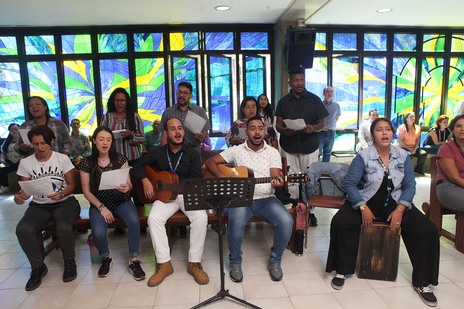A las 11 de la mañana, la iglesia estuvo repleta de ucabistas de todos los sectores que componen la organización, y la ocasión fue propicia para que los himnos que acompañan la misa se entonaran con mayor entusiasmo y alegría.