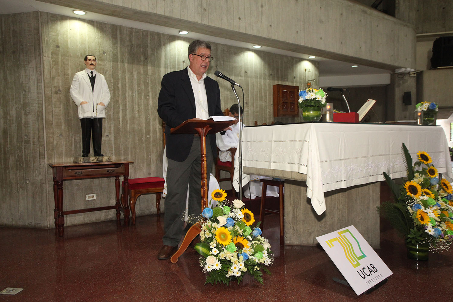 Este martes 24 de octubre, la comunidad ucabista celebró —congregada en la parroquia María Trono de la Sabiduría, en el campus de Montalbán— sus 70 años de fundada, ocasión que permitió al rector, reverendo padre Arturo Peraza S.J., agradecer y felicitar la actitud corporativa de la institución y la de todo su talento humano que, tal como lo marca el magis ignaciano, ha sido capaz de fortalecerse, crecer y dar buenos frutos a pesar de las difíciles circunstancias nacionales.