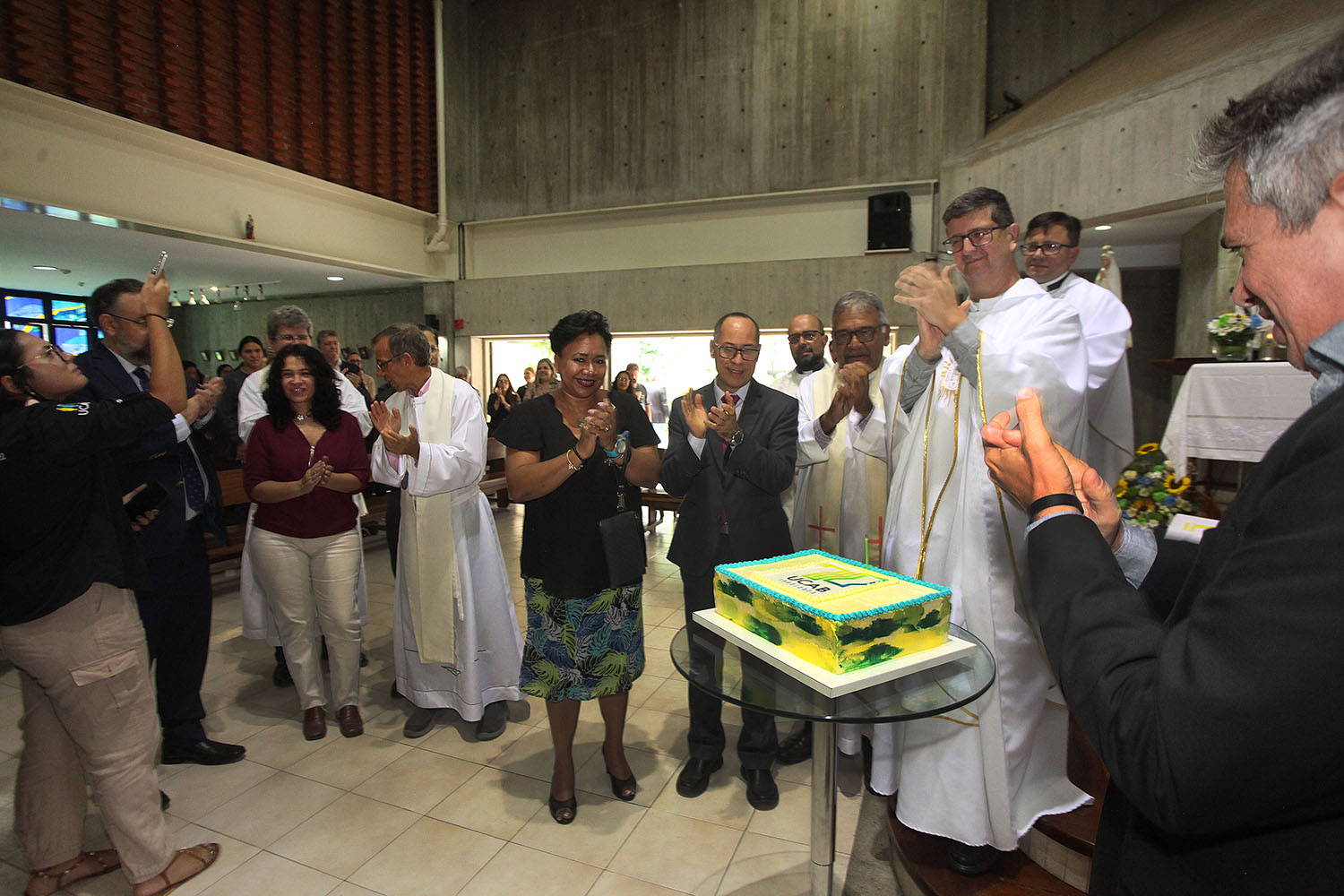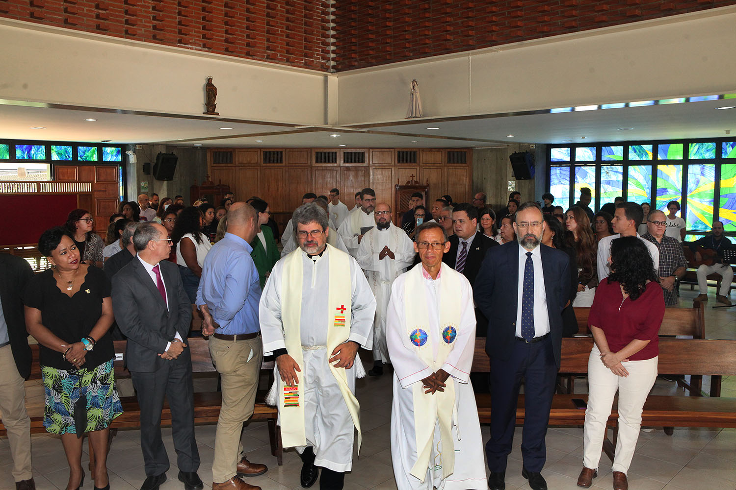 Este martes 24 de octubre, la comunidad ucabista celebró —congregada en la parroquia María Trono de la Sabiduría, en el campus de Montalbán— sus 70 años de fundada, ocasión que permitió al rector, reverendo padre Arturo Peraza S.J., agradecer y felicitar la actitud corporativa de la institución y la de todo su talento humano que, tal como lo marca el magis ignaciano, ha sido capaz de fortalecerse, crecer y dar buenos frutos a pesar de las difíciles circunstancias nacionales.