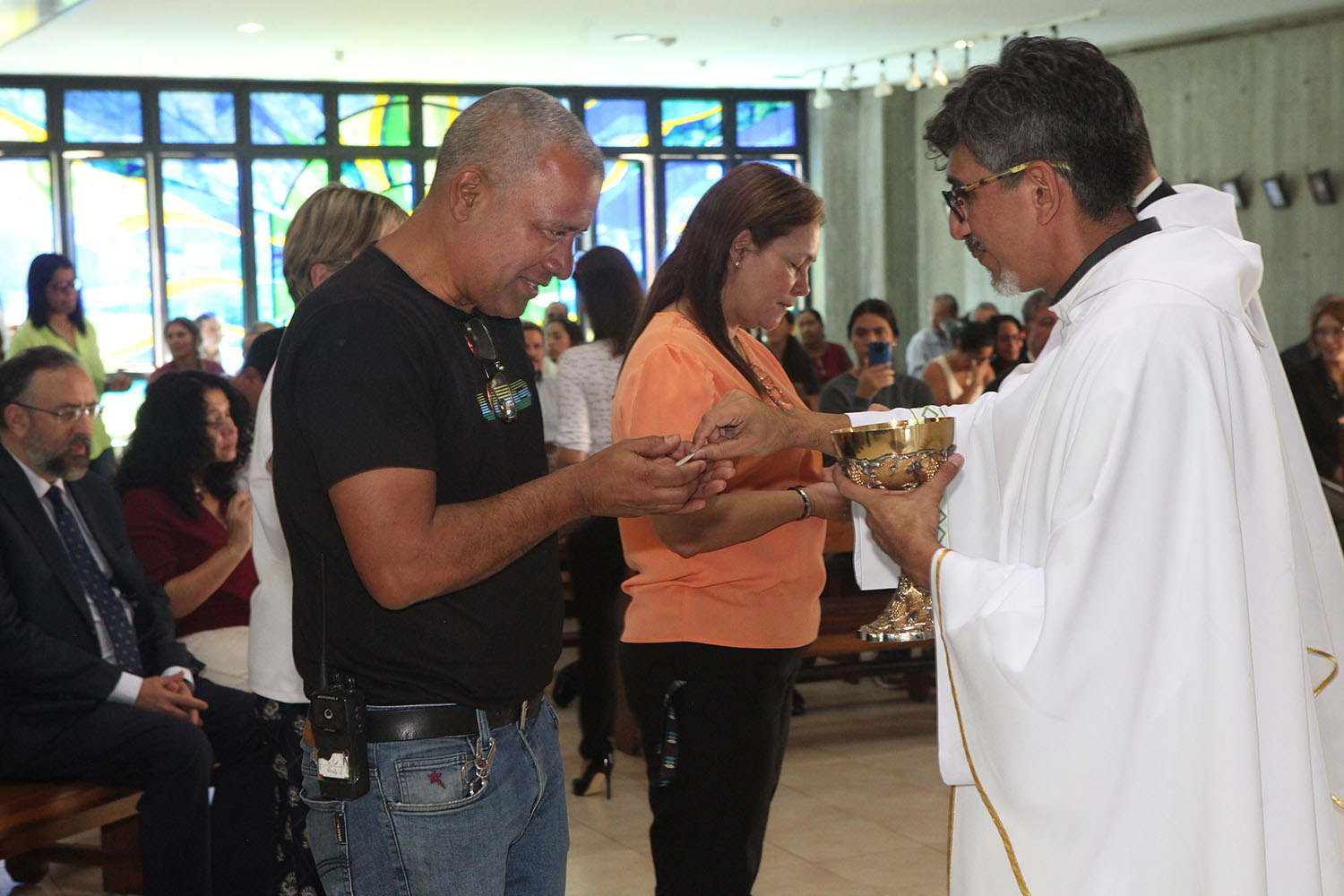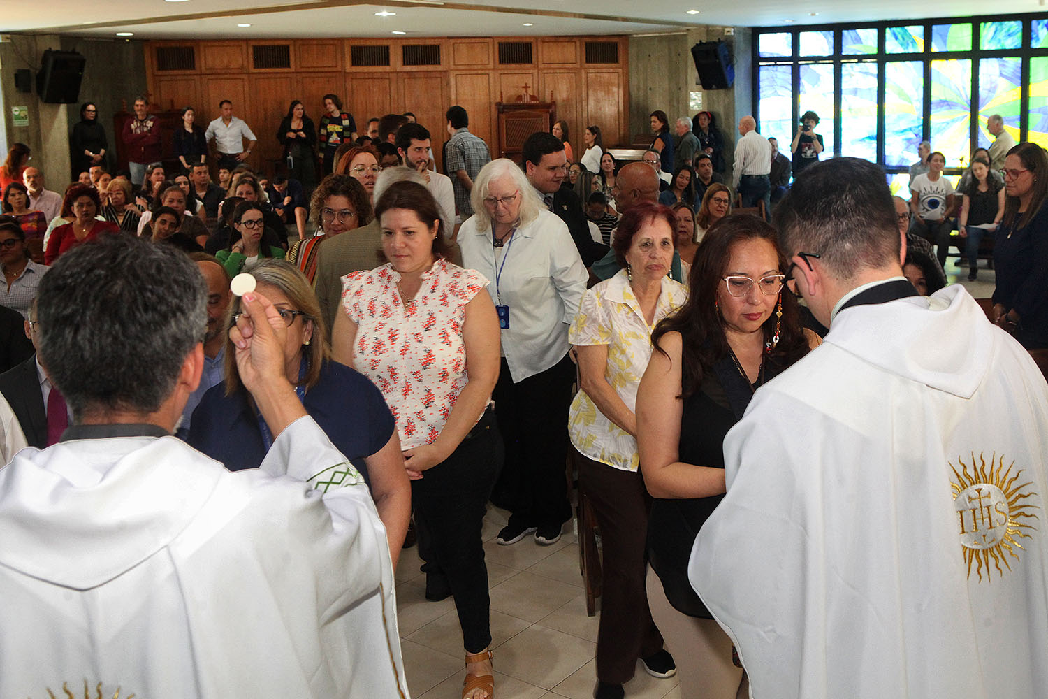 A las 11 de la mañana, la iglesia estuvo repleta de ucabistas de todos los sectores que componen la organización, y la ocasión fue propicia para que los himnos que acompañan la misa se entonaran con mayor entusiasmo y alegría.