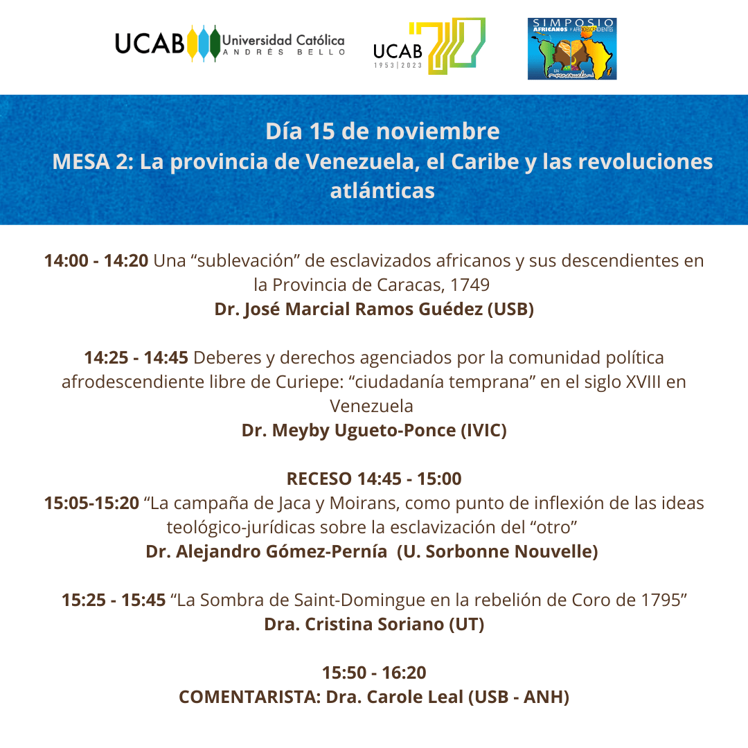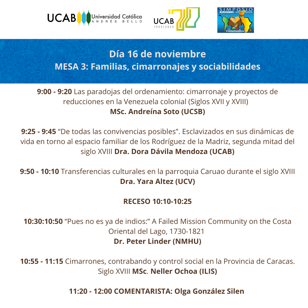 Los próximos 15 y 16 de noviembre, el Instituto de Investigaciones Históricas (IIH) de la UCAB –en alianza con Fundación Telema, el Departamento de Historia de la Universidad de Santa Bárbara (California) y otros patrocinantes- presentará una serie de ponencias en el marco del simposio internacional «Africanos y afrodescendientes en Venezuela (siglos XVI-XVIII). Debates recientes y perspectivas futuras».
