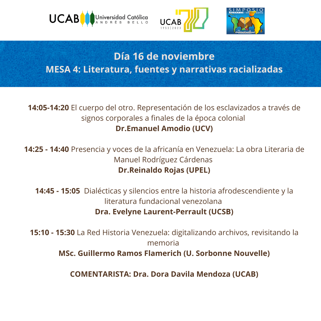 El encuentro que realizará la UCAB los días 15 y 16 de noviembre reunirá a 18 ponentes venezolanos e internacionales, quienes abordarán tres siglos de historia nacional enfocados en la sociedad y cultura afrodescendiente. El evento busca ofrecer una óptica más inclusiva y amplia que ayude a superar los matices ideológicos y «el uso político» de este tema
