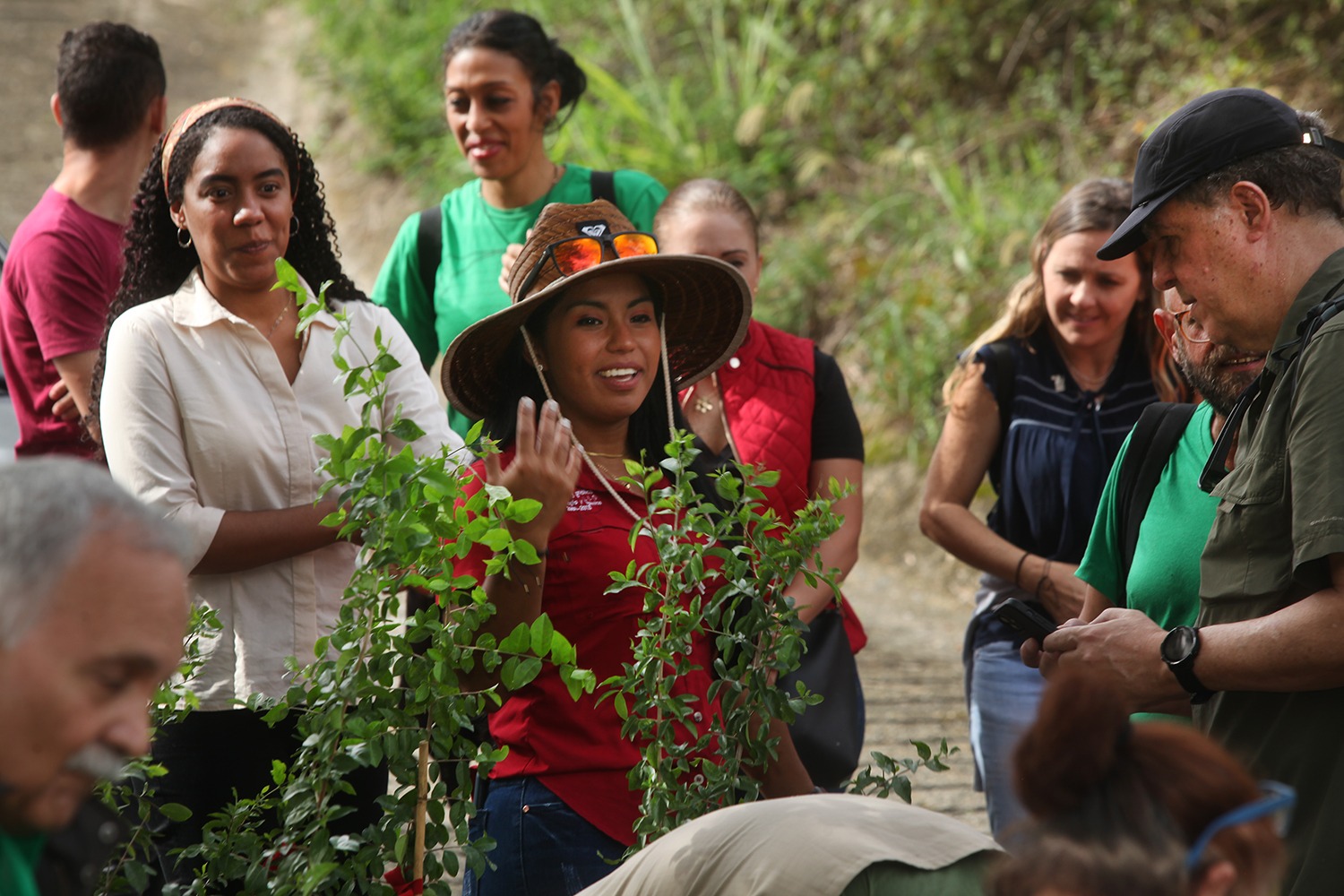 “Estamos sembrando un poco de todo. Estamos sembrando veras, que florecen en amarillo y atraen mucho a los insectos y la polinización, es decir, favorecen a todo el ecosistema de las abejas y además favorecen a toda la materia orgánica que se va a generar en el suelo; tenemos robles, que es un árbol resistente y crece muy rápido; tenemos semerucos, que generan frutos que son apetecibles para la fauna de la zona, al igual que el jobo. Además, sembramos café y cacao, los cuales ya existían en esta zona”.