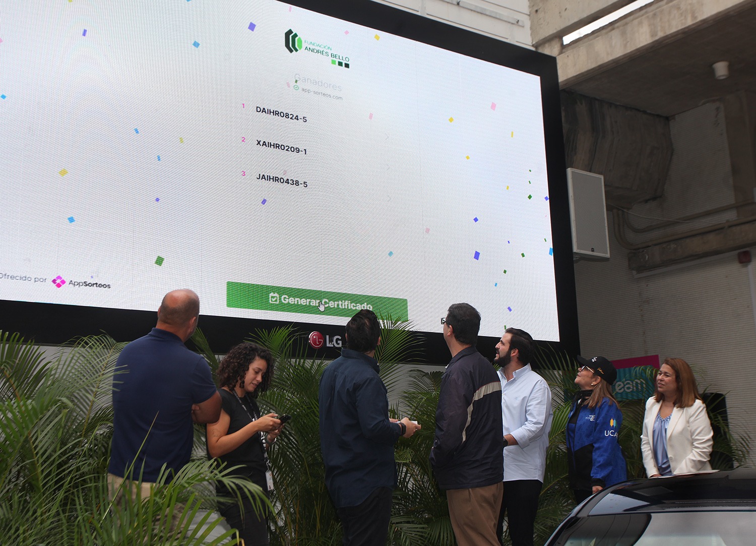 Durante el sorteo estuvieron presentes el rector, Arturo Peraza, S.J.; el vicerrector académico, José Francisco Juárez; el vicerrector administrativo, Gustavo García; Déborah Cordero, directora de la Fundación Andrés Bello, y Nicola Yammine, director de Egresados UCAB, Nicola Yammine, además de representantes de Hyundai y Laser Airlines, patrocinadores de la rifa.
