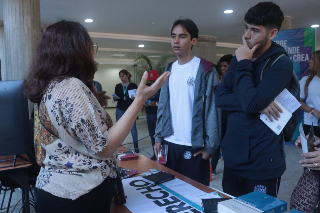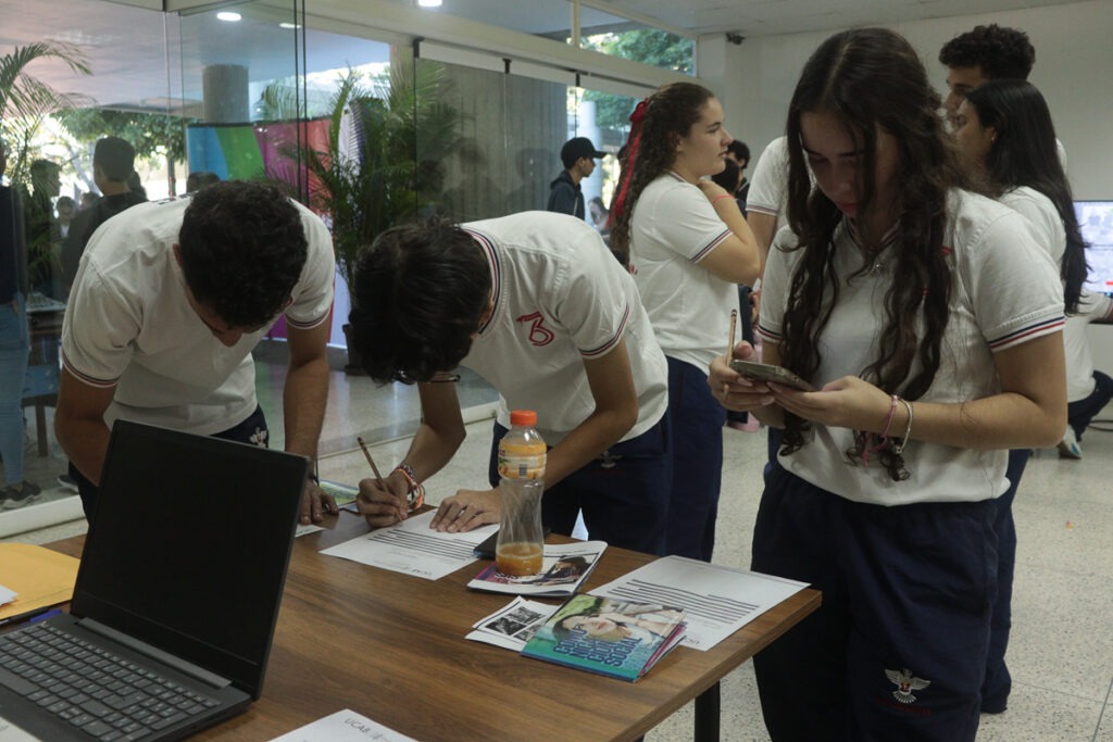 La Secretaría General de la UCAB también estuvo presente en la feria, con un stand donde los futuros bachilleres pudieron inscribirse en la próxima prueba de conocimiento, requisito indispensable de acceso en la institución. Este examen se llevará a cabo el 27 de enero y los alumnos que resulten seleccionados ingresarán en el periodo académico octubre-enero 2024-2025.