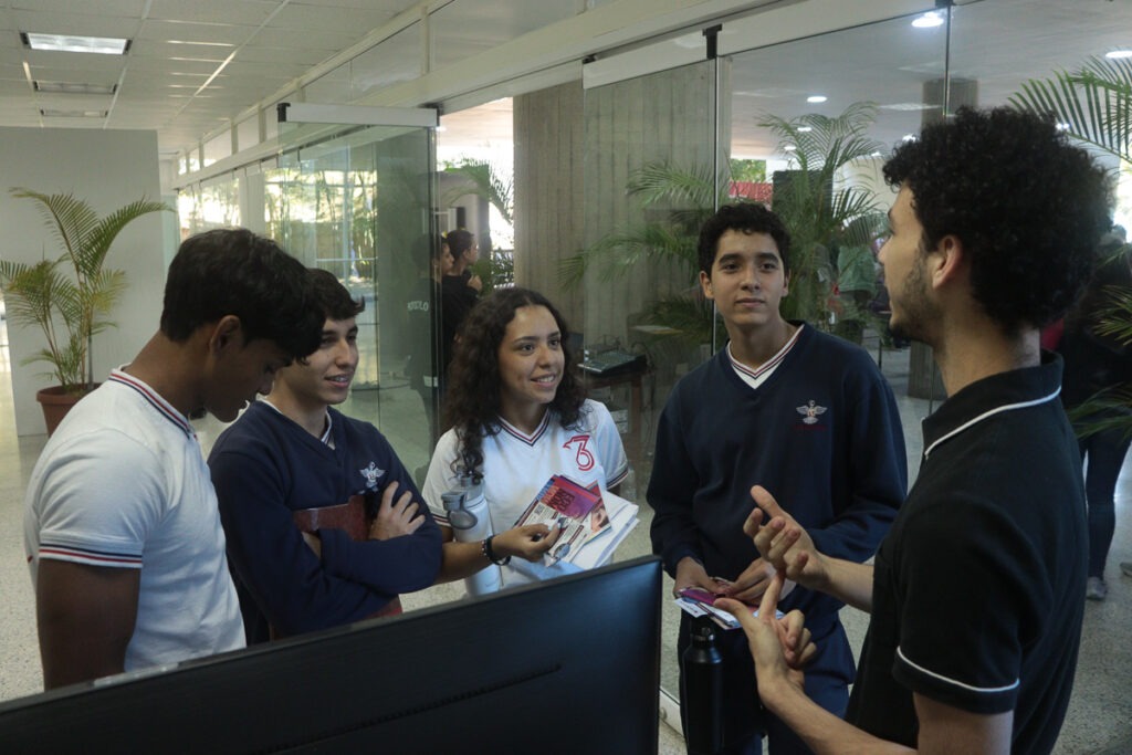 A través de una charla introductoria, los estudiantes recibieron información general sobre la institución. Posteriormente, pudieron visitar los stands de las diferentes carreras, así como distintas áreas del campus. Allí interactuaron con directores, profesores y estudiantes para aclarar dudas sobre el pensum, lapsos de estudio, además de experimentar algunas actividades que desarrollarán como alumnos.