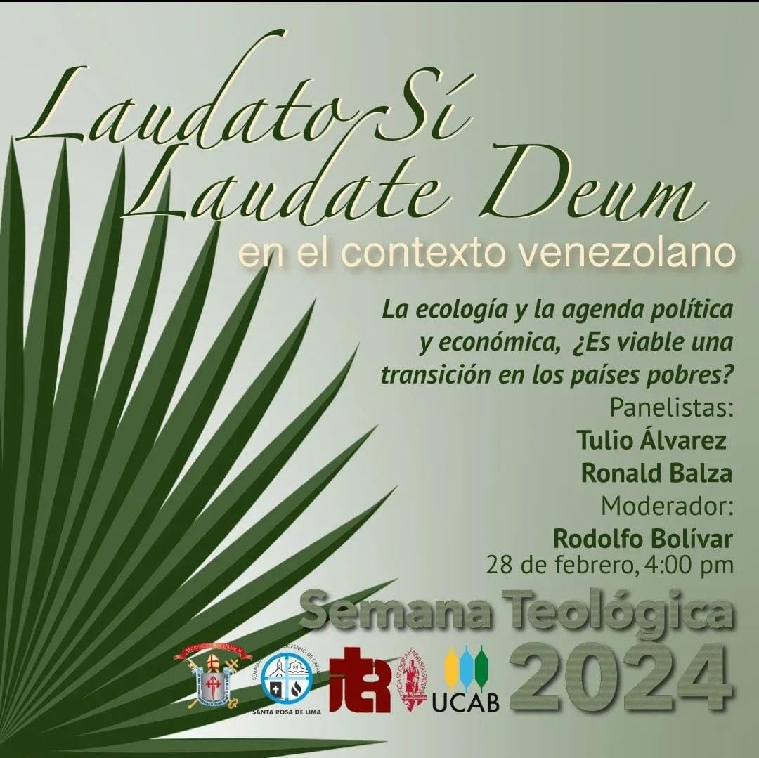 La Facultad de Teología de la Universidad Católica Andrés Bello (UCAB), a través del Instituto de Teología para Religiosos (ITER), anuncia la celebración de la Semana Teológica 2024, que este año se titula «Laudato Si, Laudate Deum en el contexto venezolano».