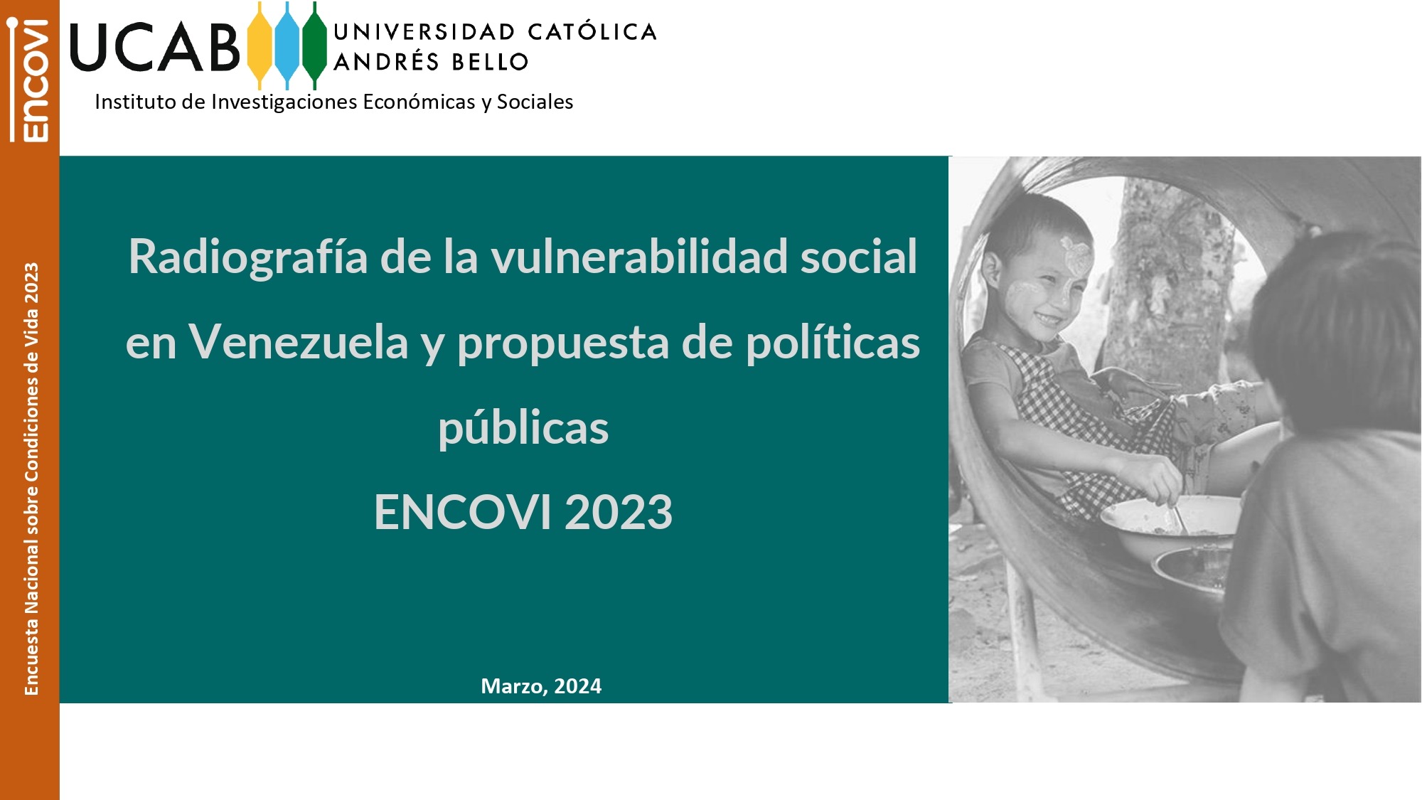 Bajo el título de “Radiografía de la vulnerabilidad social en Venezuela y propuesta de políticas públicas”, el Instituto de Investigaciones Económicas y Sociales de la Universidad Católica Andrés Bello (IIES-UCAB), reveló, el miércoles 13 de marzo, los resultados de la Encuesta Nacional de Condiciones de Vida (ENCOVI) correspondientes a 2023.