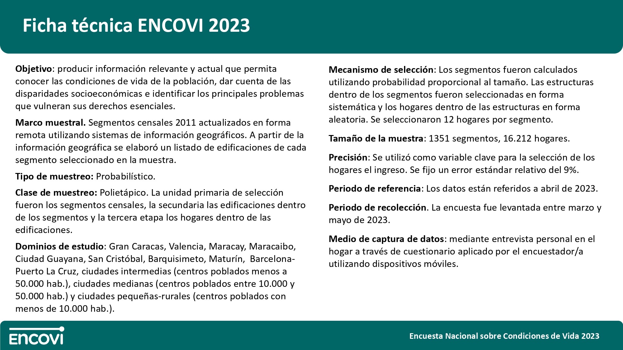 Los interesados en revisar la presentación completa de los resultados de la ENCOVI 2023, así como su ficha técnica, pueden visitar el portal https://proyectoencovi.com.
