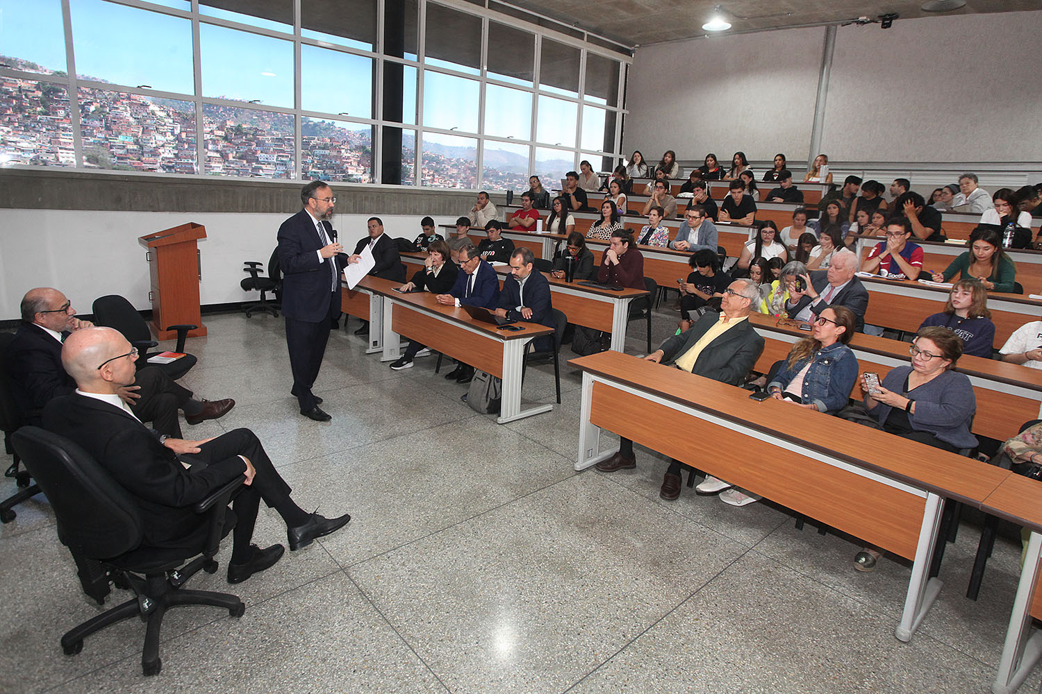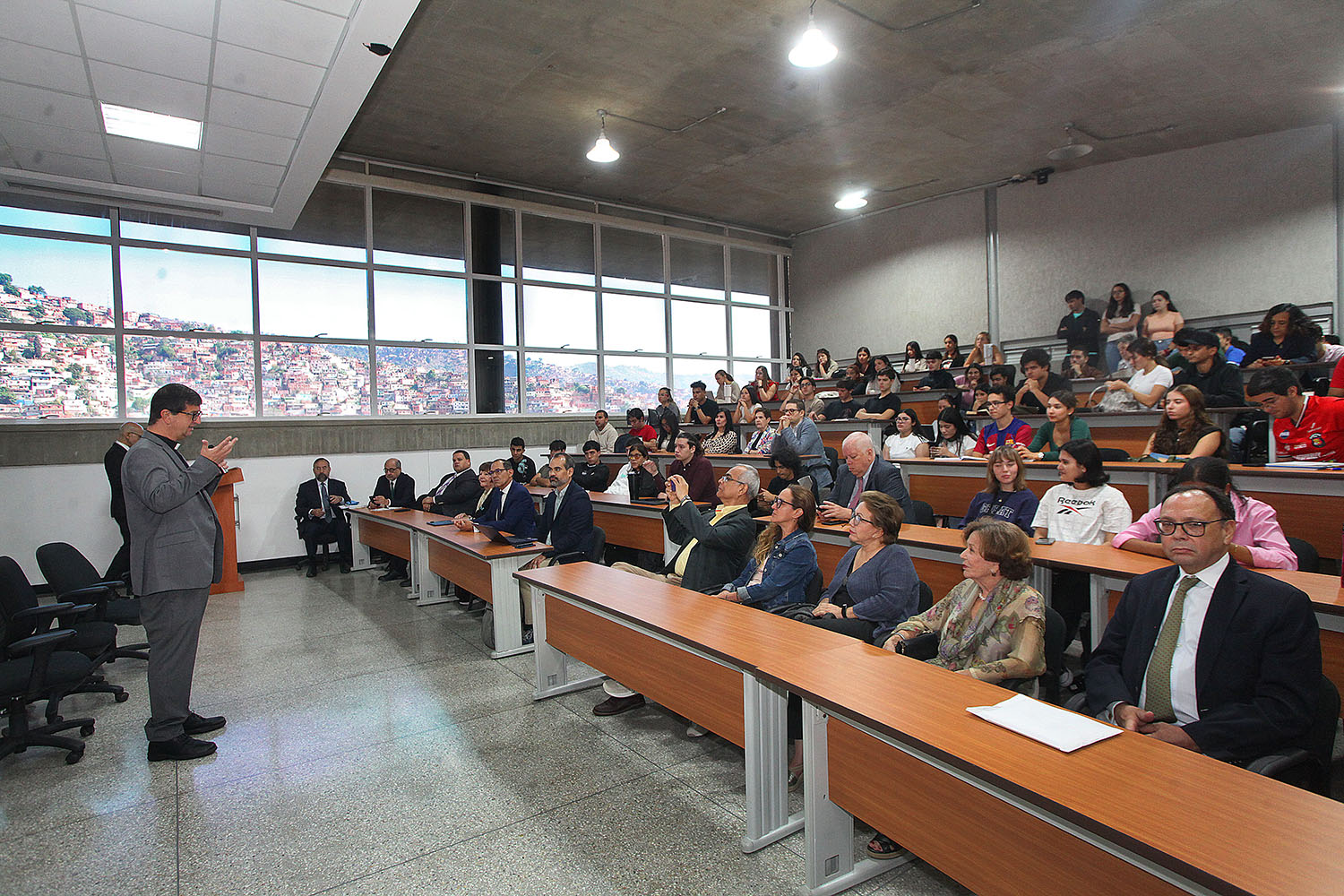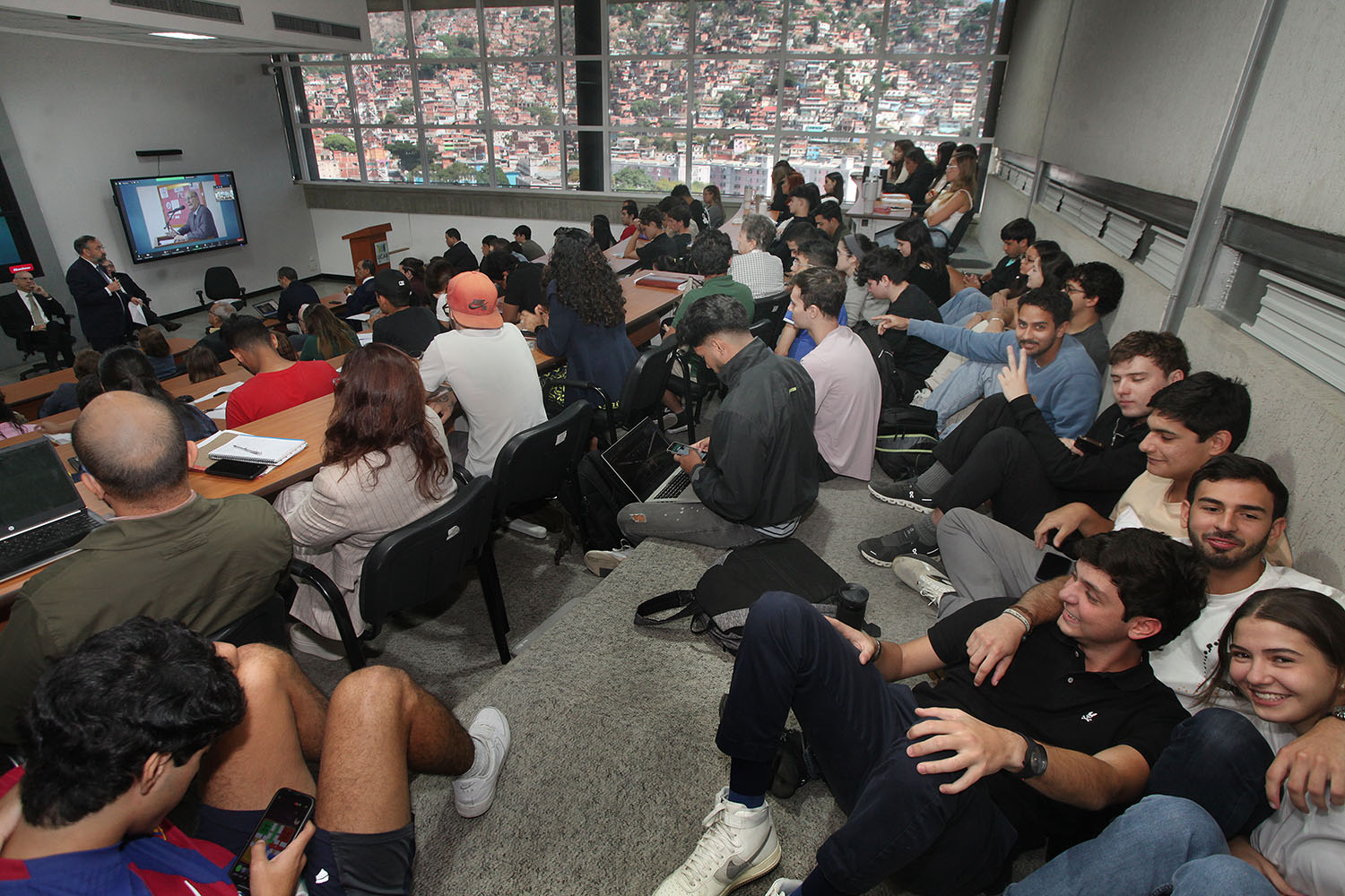 Estudiantes de diversas cátedras de la Escuela de Derecho colmaron el auditorio del Centro de Innovación y Emprendimiento, en el campus de Montalbán. También estuvieron como panelistas en un par de temas: “Innovando en la protección laboral: enseñanzas y estrategias pos covid-19 en Venezuela”, (Irina Miljevic y Jhony Bompart, de UCAB Guayana) y “La transición constitucional y su continuidad en Venezuela” (Daniel Graterón, María Paula Guerrero y María Victoria Ordaz, de UCAB-Caracas).