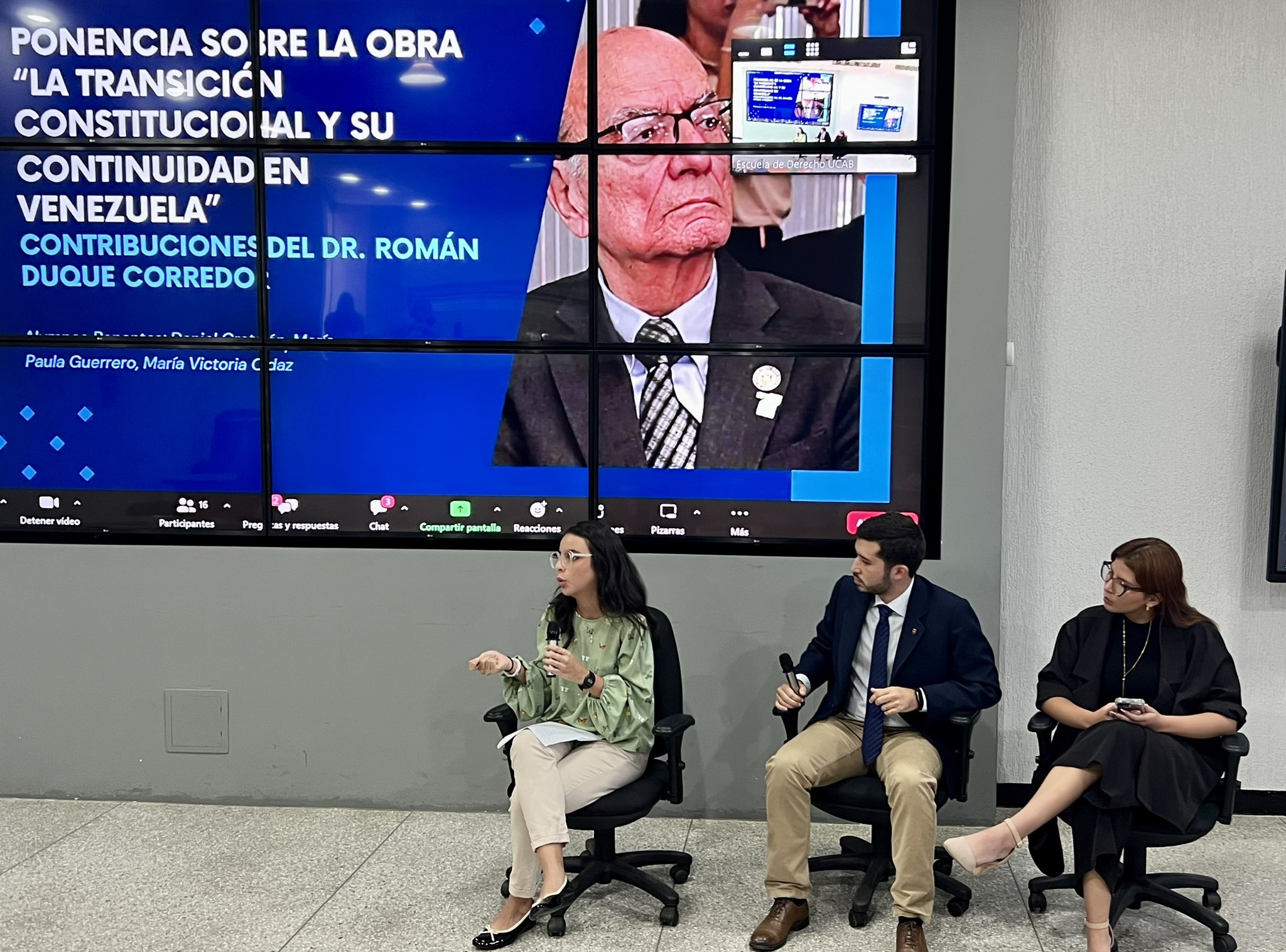 Estudiantes de diversas cátedras de la Escuela de Derecho colmaron el auditorio del Centro de Innovación y Emprendimiento, en el campus de Montalbán. También estuvieron como panelistas en un par de temas: “Innovando en la protección laboral: enseñanzas y estrategias pos covid-19 en Venezuela”, (Irina Miljevic y Jhony Bompart, de UCAB Guayana) y “La transición constitucional y su continuidad en Venezuela” (Daniel Graterón, María Paula Guerrero y María Victoria Ordaz, de UCAB-Caracas).