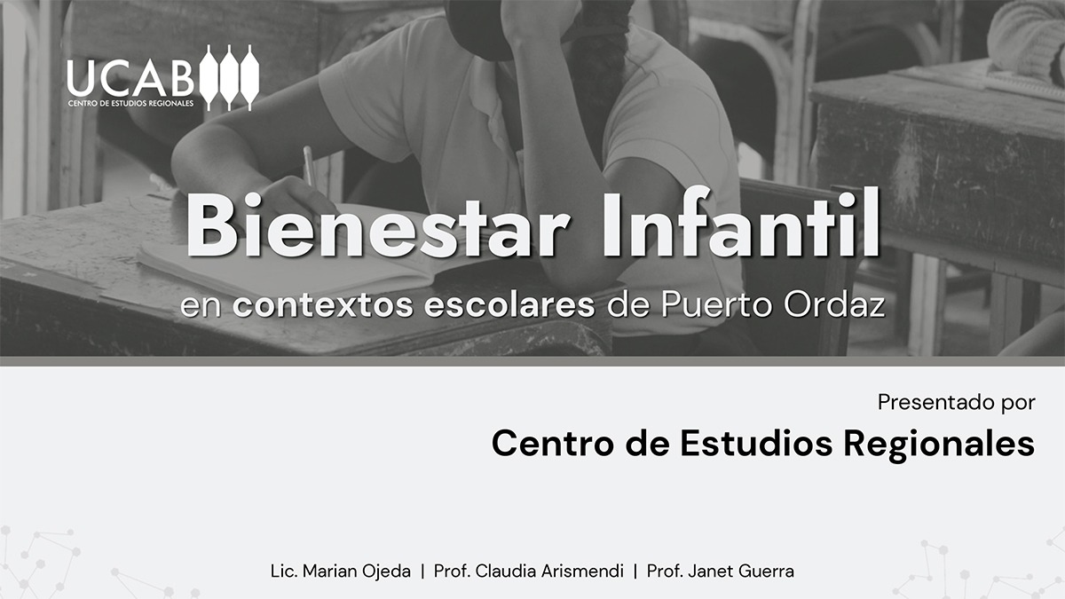 La necesidad de apoyo familiar, experiencias de violencia y una brecha cognitiva asociada al nivel socioeconómico son parte de los hallazgos más relevantes del estudio «Bienestar infantil en contextos escolares del municipio Caroní» del estado Bolívar, presentados este martes 23 de abril por el Centro de Estudios Regionales (CER) de la Universidad Católica Andrés Bello, extensión Guayana (UCAB Guayana).
