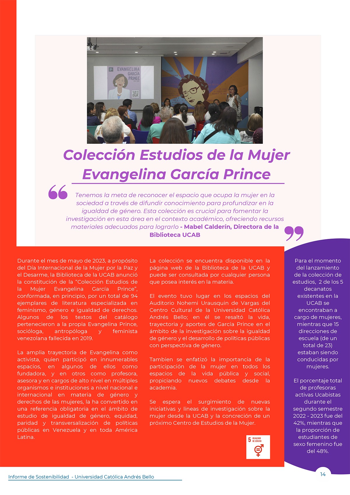 “El informe no muestra la totalidad de las iniciativas que ha desarrollado la UCAB en materia de sostenibilidad hasta el momento. Decidimos tomar sólo algunas porque no queríamos simplemente listarlas; la intención es que cuando el lector tome el informe lo encuentre cercano y comprensible y sienta interés en leerlo al detalle, que se involucre con el contenido y, por qué no, se anime a participar en los programas sociales de la universidad”, explicó Gabriela D’Ambrosio, coordinadora de la Unidad de Estadísticas Institucionales.