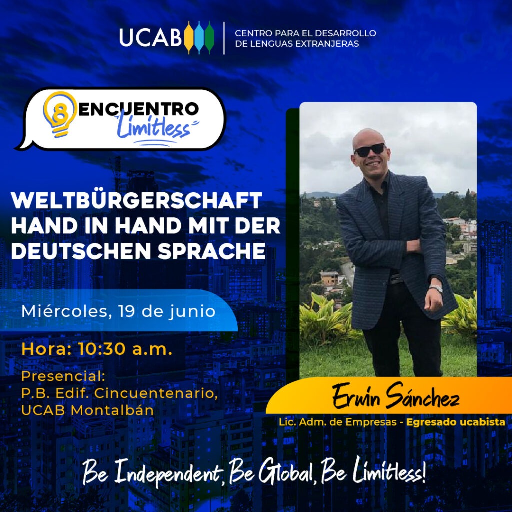 A las 10:30 am, Erwin Sánchez, también egresado ucabista en Administración de Empresas, tendrá a su cargo la conferencia en alemán «Weltbürgerschaft hand in hand mit der deutschen sprache». En este espacio, tratará temas como competencia laboral en la actualidad, el idioma alemán y su peso en el mercado de trabajo, a partir de datos y experiencias personales.