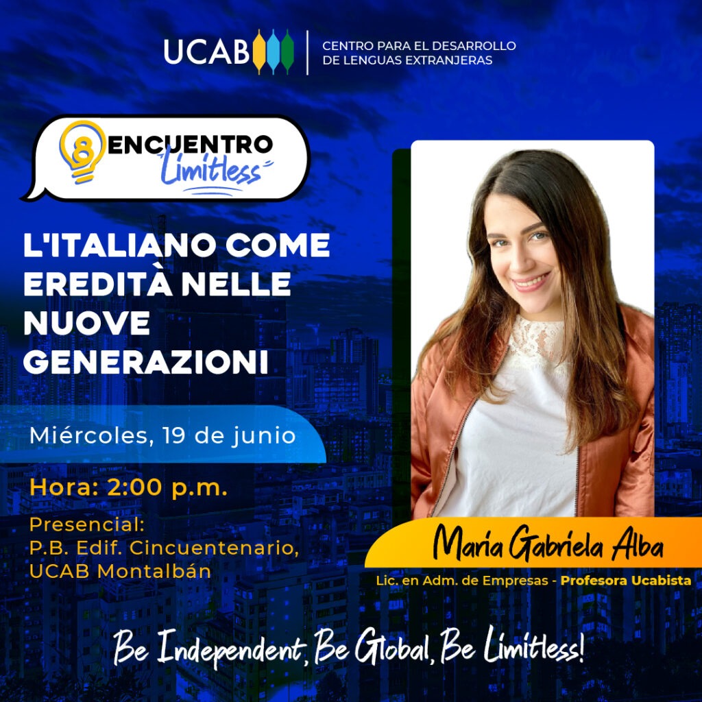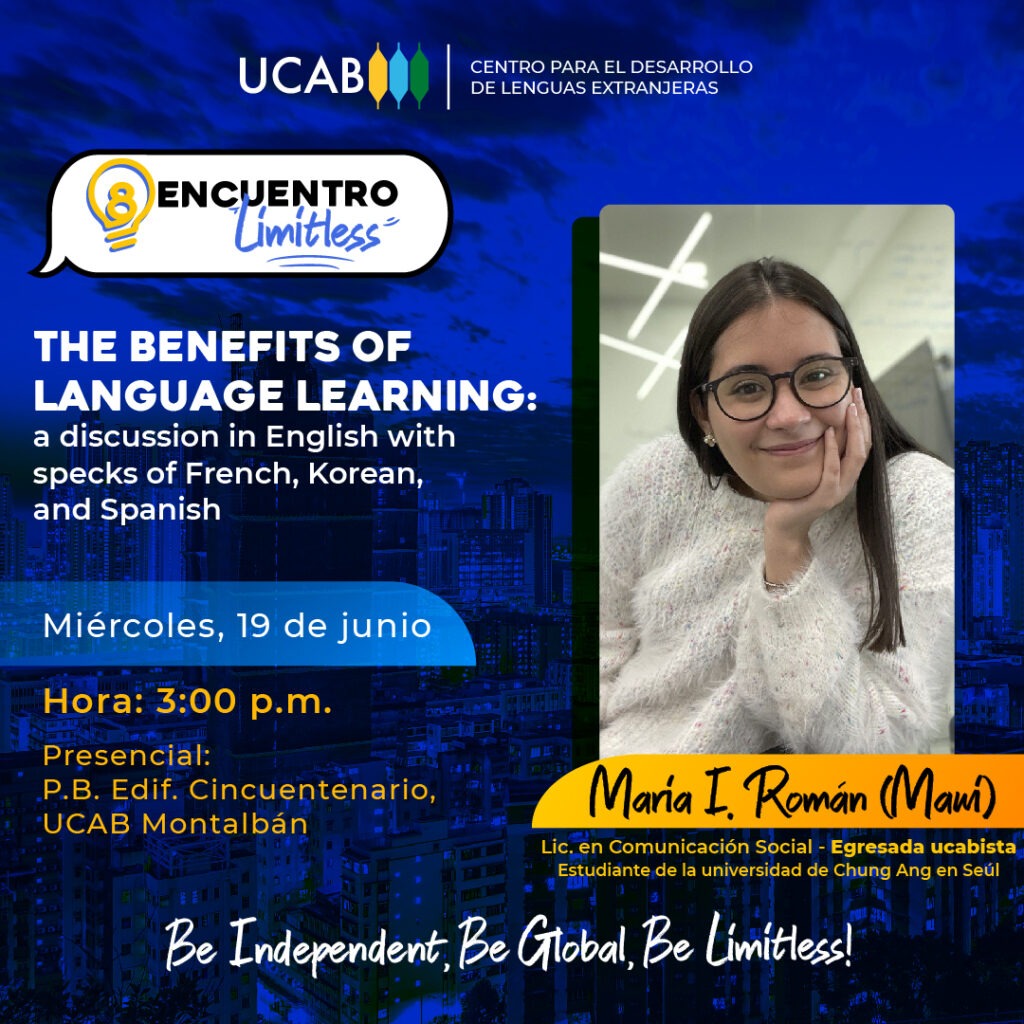 El Centro para el Desarrollo de Lenguas Extranjeras (CDLE) de la UCAB invita a toda la comunidad ucabista y al público general a participar en su anual Encuentro Limitless, programado para el miércoles 19 de junio, de 8.30 am a 5:00 pm, en la planta baja del Edificio Cincuentenario, en el campus Montalbán.