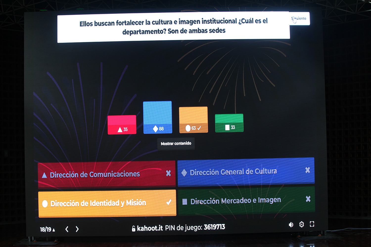 La primera de ellas fue la segunda edición de la Trivia UCAB (Kahoot), donde los participantes se conectaron a través de un código QR en sus dispositivos móviles para responder las preguntas sobre la universidad y su quehacer, planteadas por los organizadores con el apoyo del equipo del Centro de Estudios en Línea (CEL). Moderó la secretaria de la UCAB, Magaly Vásquez.